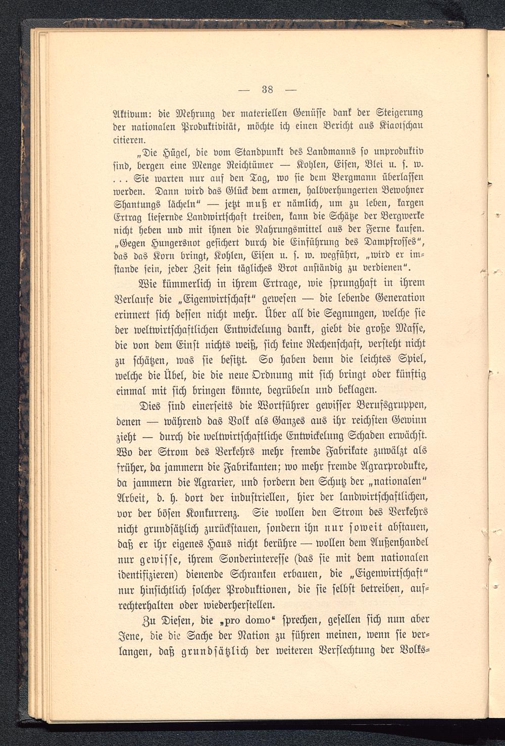 Aktivum: die Mehrung der materiellen Genüsse dank der Steigerungder nationalen Produktivität, möchte ich einen Bericht aus Kiaolschaucitieren.