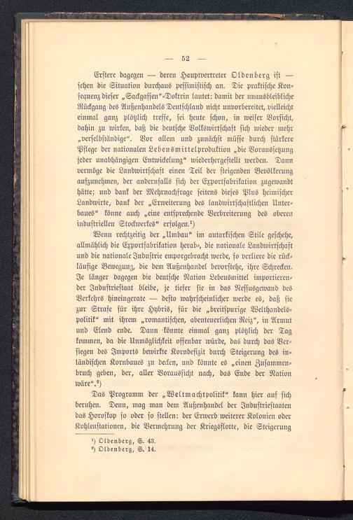 Das Programm der „Weltmachtpolitik" kann hier auf sichberuhen. Denn, mag man dem Außenhandel der Industriestaatendas Horoskop so oder so stellen: der Erwerb weiterer Kolonien oderKohlenstationen, die Vermehrung der Kriegsflotte, die Steigerung