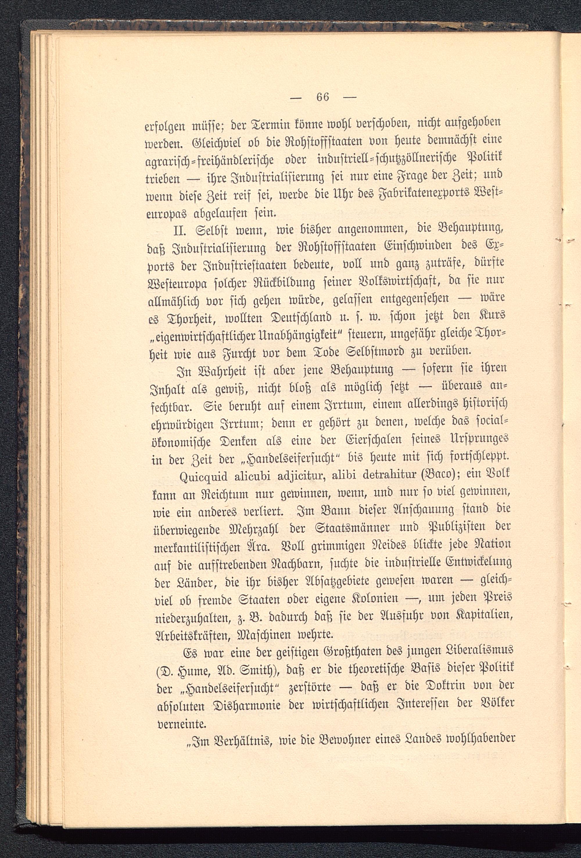 Es war eine der geistigen Großthaten des jnngen Liberalismus(D. Hume, Ad. Smith), daß er die theoretische Basis dieser Politikder „Handelseifersucht" zerstörte — daß er die Doktrin von derabsoluten Disharmonie der wirtschaftlichen Interessen der Völkerverneinte.