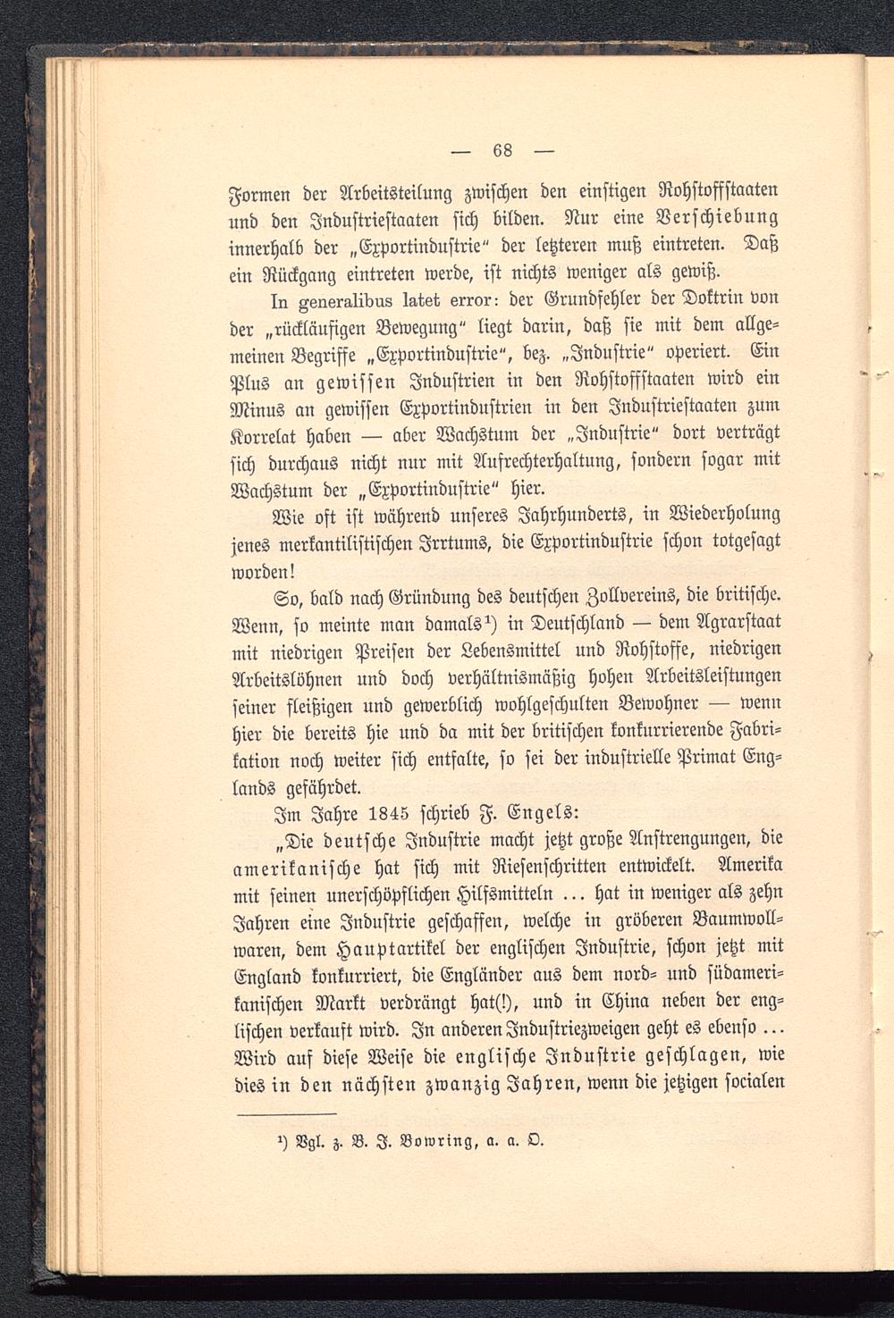 „Die deutsche Industrie macht jetzt große Anstrengungen, dieamerikanische hat sich mit Riesenschritten entwickelt. Amerika mit seinen unerschöpflichen Hilfsmitteln ... hat in weniger als zehnJahren eine Industrie geschaffen, welche in gröberen Baumwoll-waren, dem Hauptartikel der englischen Industrie, schon jetzt mitEngland konkurriert, die Engländer aus dem nord- und südameri-kanischen Markt verdrängt hat(!), und in China neben der eng-lischen verkauft wird. In anderen Industriezweigen geht es ebenso ...Wird auf diese Weise die englische Industrie geschlagen, wiedies in den nächsten zwanzig Jahren, wenn die jetzigen socialen