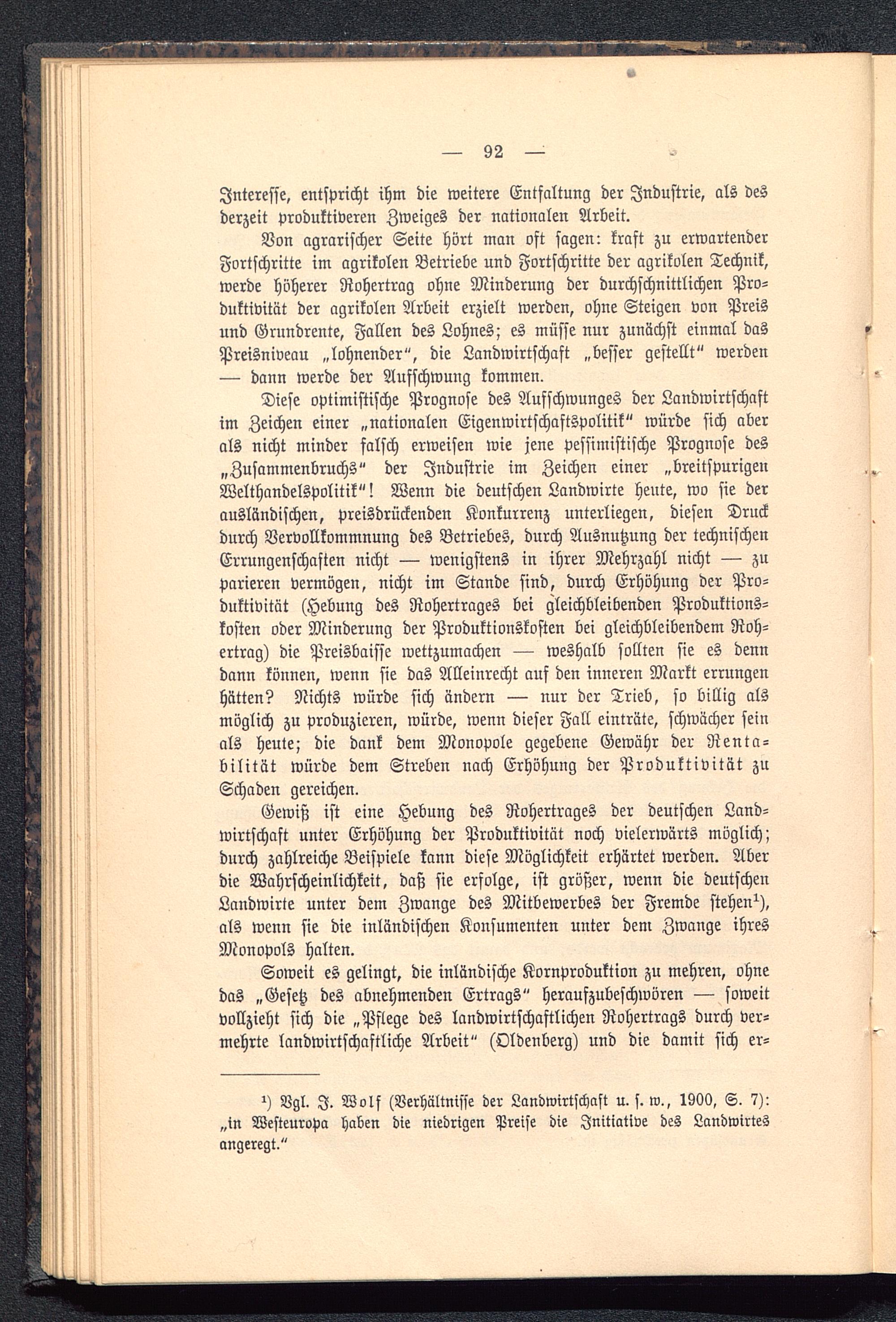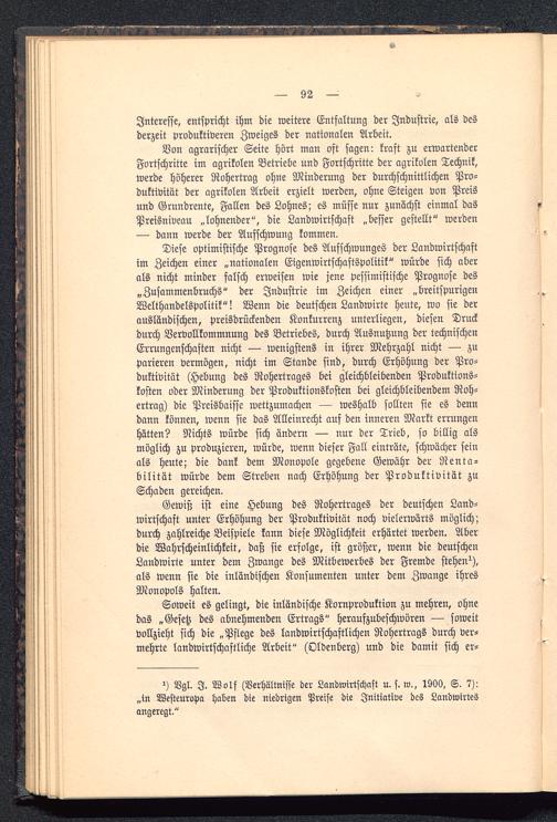 Von agrarischer Seite hört man oft sagen: kraft zu erwartenderFortschritte im agrikolen Betriebe und Fortschritte der agrikolen Technik,werde höherer Rohertrag ohne Minderung der durchschnittlichen Pro-duktivität der agrikolen Arbeit erzielt werden, ohne Steigen von Preisund Grundrente, Fallen des Lohnes; es müsse nur zunächst einmal dasPreisniveau „lohnender", die Landwirtschaft „besser gestellt" werden— dann werde der Aufschwung kommen.