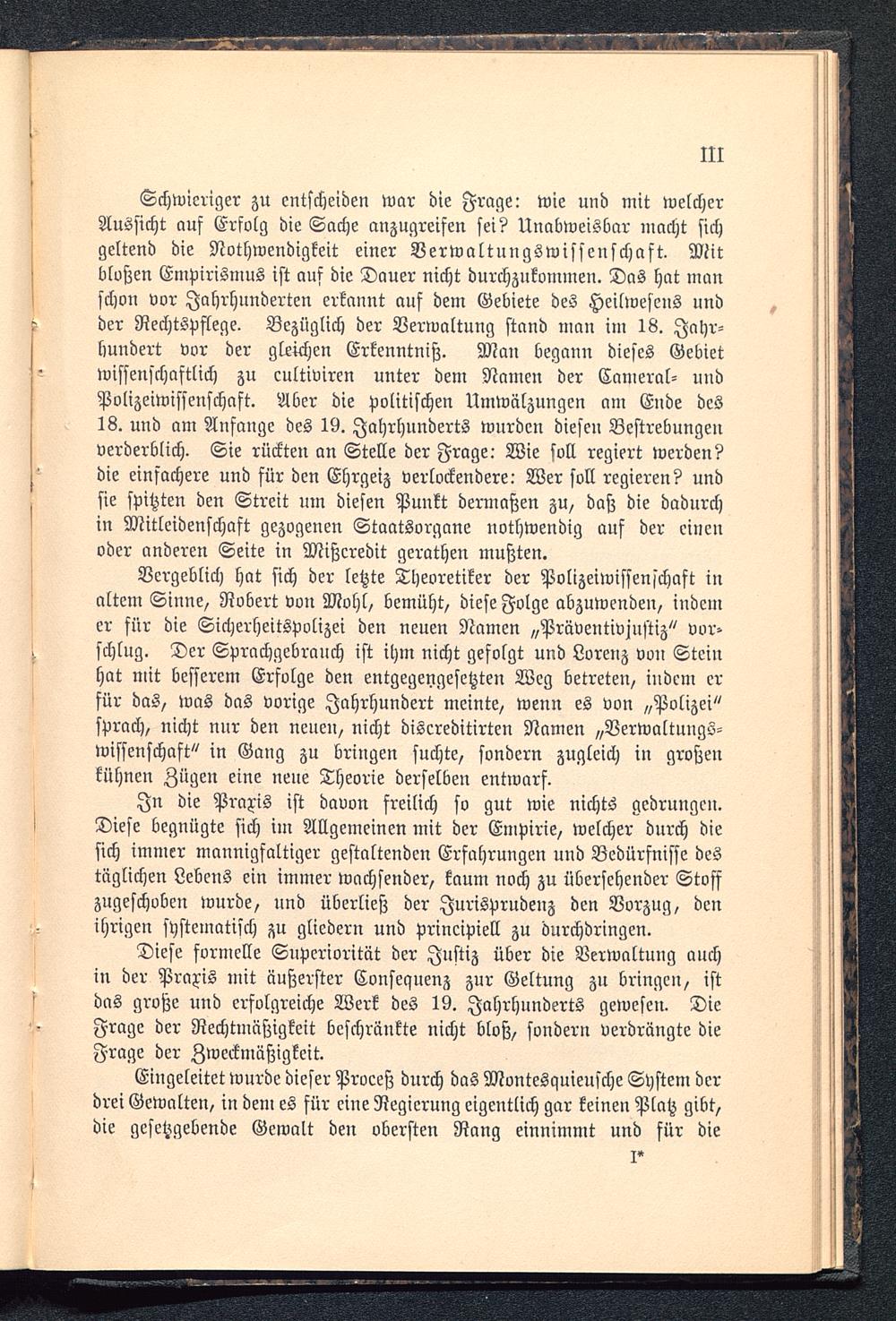 Vergeblich hat sich der letzte Theoretiker der Polizeiwissenschaft inaltem Sinne, Robert von Mohl , bemüht, diese Folge abzuwenden, indemer für die Sicherheitspolizei den neuen Namen „Präventivjustiz" vor-schlug. Der Sprachgebrauch ist ihm nicht gefolgt und Lorenz von Stein hat niit besserem Erfolge den entgegengesetzten Weg betreten, indem erfür das, was das vorige Jahrhundert meinte, wenn es von „Polizei"sprach, nicht nur den neueu, nicht discreditirten Namen „Verwaltuugs-wissenschaft" in Gang zu bringen suchte, sondern zugleich in großenkühnen Zügen eine neue Theorie derselben entwarf.