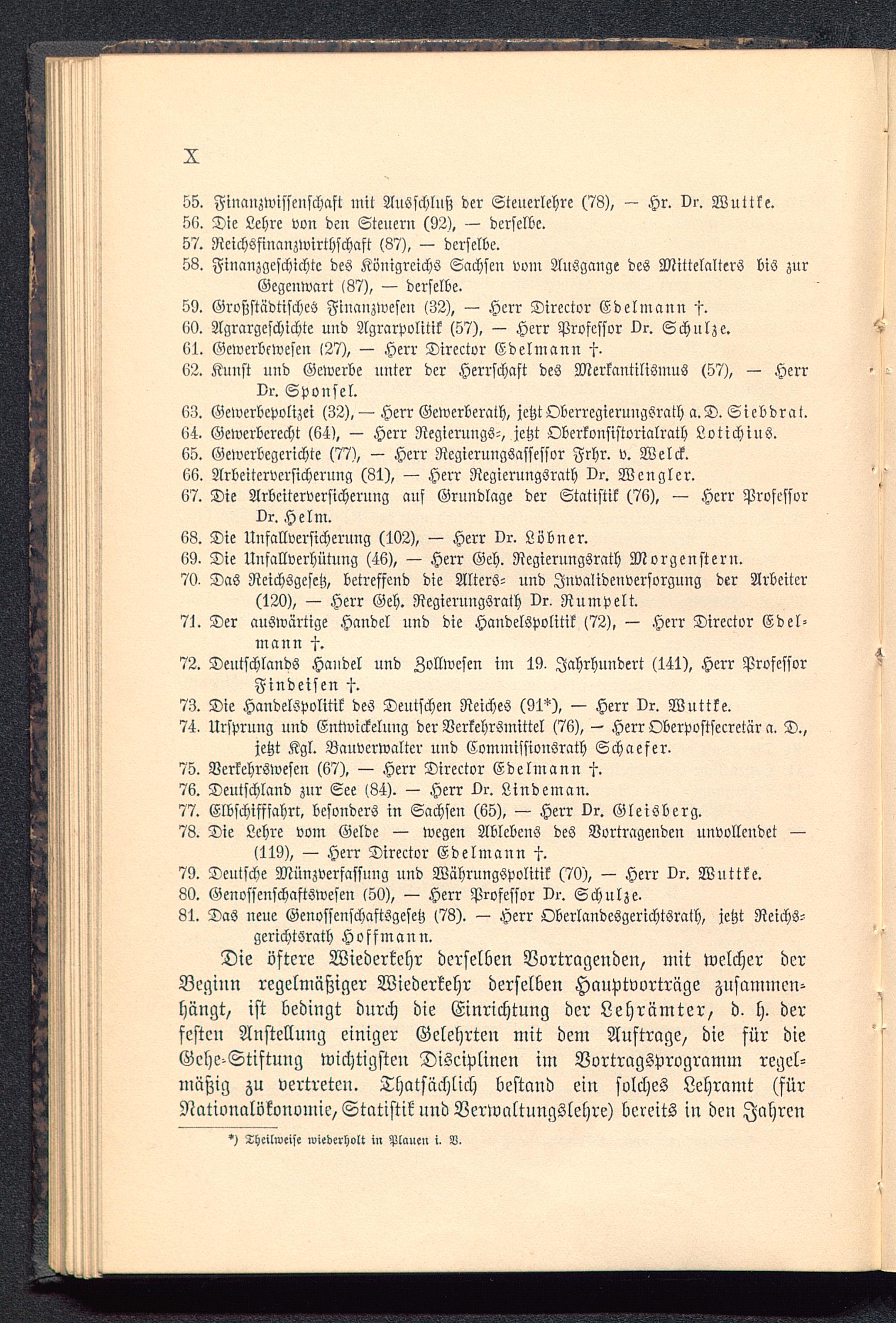 gerichtSrath Hoffmann.Die öftere Wiederkehr derselben Vortragenden, mit welcher derBeginn regelmäßiger Wiederkehr derselben Hauptvvrträge zusammen-hängt, ist bedingt durch die Einrichtung der Lehrämter, d. h. derfesten Anstelluug einiger Gelehrten mit dem Auftrage, die für dieGche^Stiftuug wichtigste» Disciplinen im Vortragsprogramm regel-mäßig zu vertreten. Thatsächlich bestand ein solches Lehramt (fürNationalökonomie, Statistik und Verwaltungslehre) bereits in den Jahren