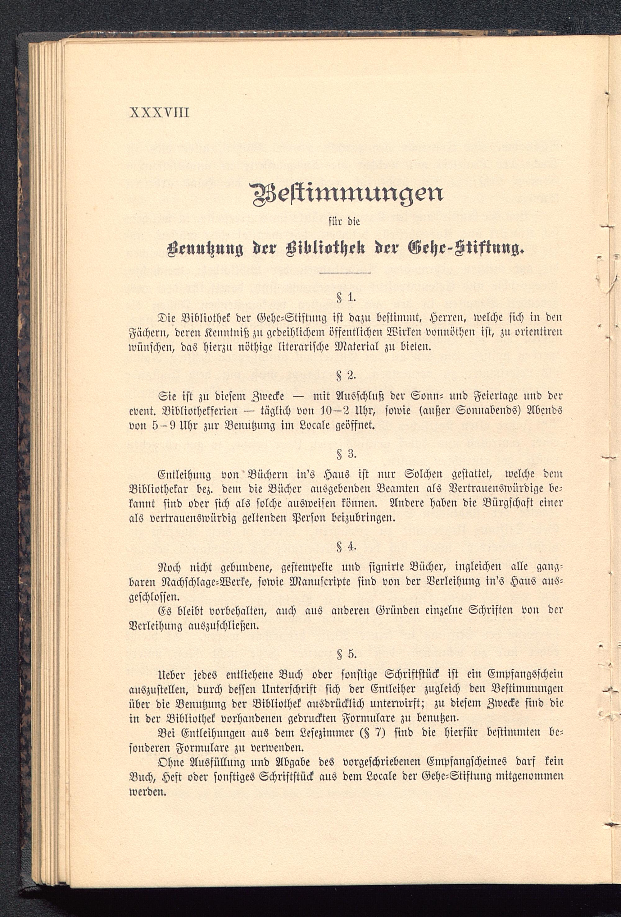 Ohne Ausfüllung und Abgabe des vorgeschriebenen Empfangscheines darf keinBuch, Heft oder sonstiges Schriftstück aus dem Locale der Gehc-Stiftuug mitgenommenwerden.