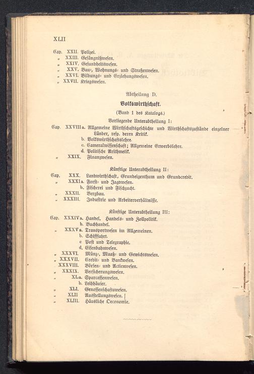 XXXVIII. Börsen- nnd Actienwesen. ,„ XXXIX. Versicherungswesen.XI. a,. Sparcassenwesen.d. Leihhäuser.„ XI^I. Genossenschaftswesen.XI.Il AuSstellungöwesen. ^Xllll. Häusliche Oecouoime.
