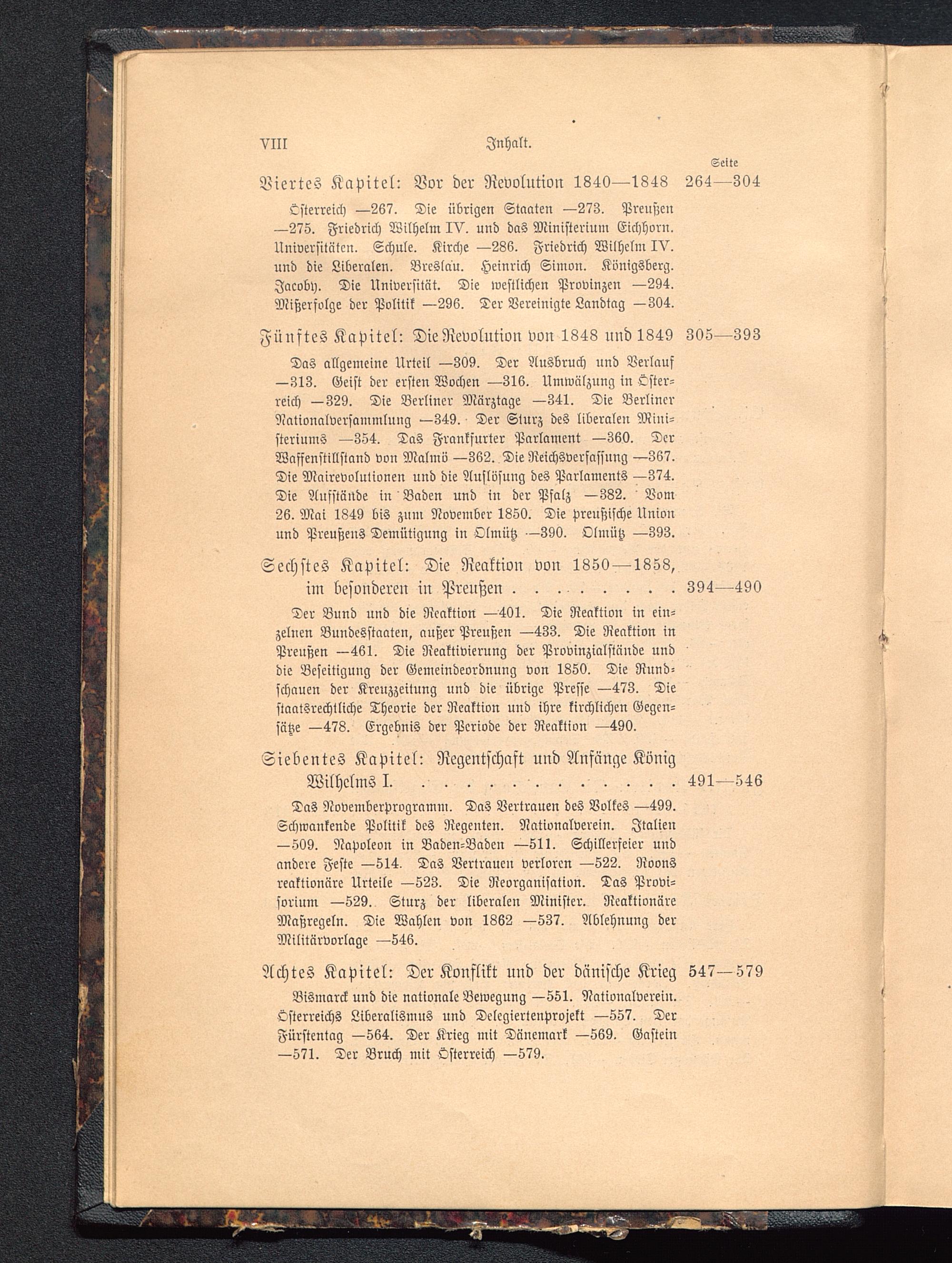 Österreich —267. Die übrigen Staaten —273. Preußen —275. Friedrich Wilhelm IV. und das Ministerium Eichhorn.Universitäten. Schule. Kirche —286. Friedrich Wilhelm IV.und die Liberalen. Brcslau. Heinrich Simon . Königsberg.Jacoby. Die Universität. Die westlichen Provinzen —294.Mißerfolge der Politik —296. Der Vereinigte Landtag —304.