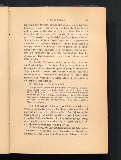 Die deutsche Bundesakte wurde am 8. Juni 1815 von33 Bevollmächtigten der beteiligten Staaten unterzeichnet und indie allgemeine Akte des Wiener Kongresses eingefügt, die am folgendenTage unterzeichnet wurde. Die Rückkehr Napoleons von Elba ,der Sturz der Bourbonen und die Erneueruug des Krieges hatteuwesentlich dazu beigetragen, die Schwierigkeiten zu überwinden, dieden Abschluß noch hinderten.