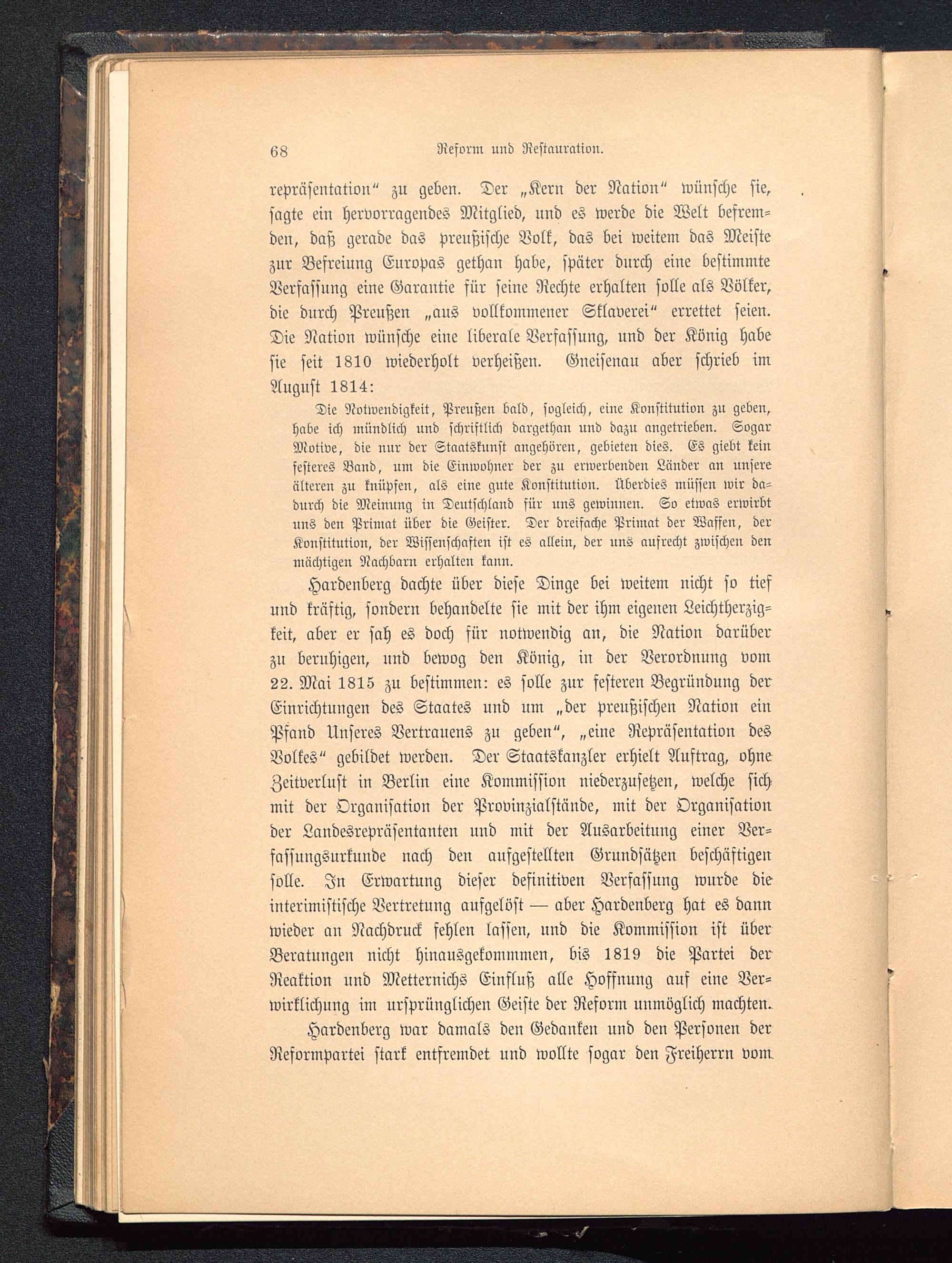 Hardenberg war damals den Gedanken und den Personen derReformpartei stark entfremdet und wollte sogar den Freiherrn vom