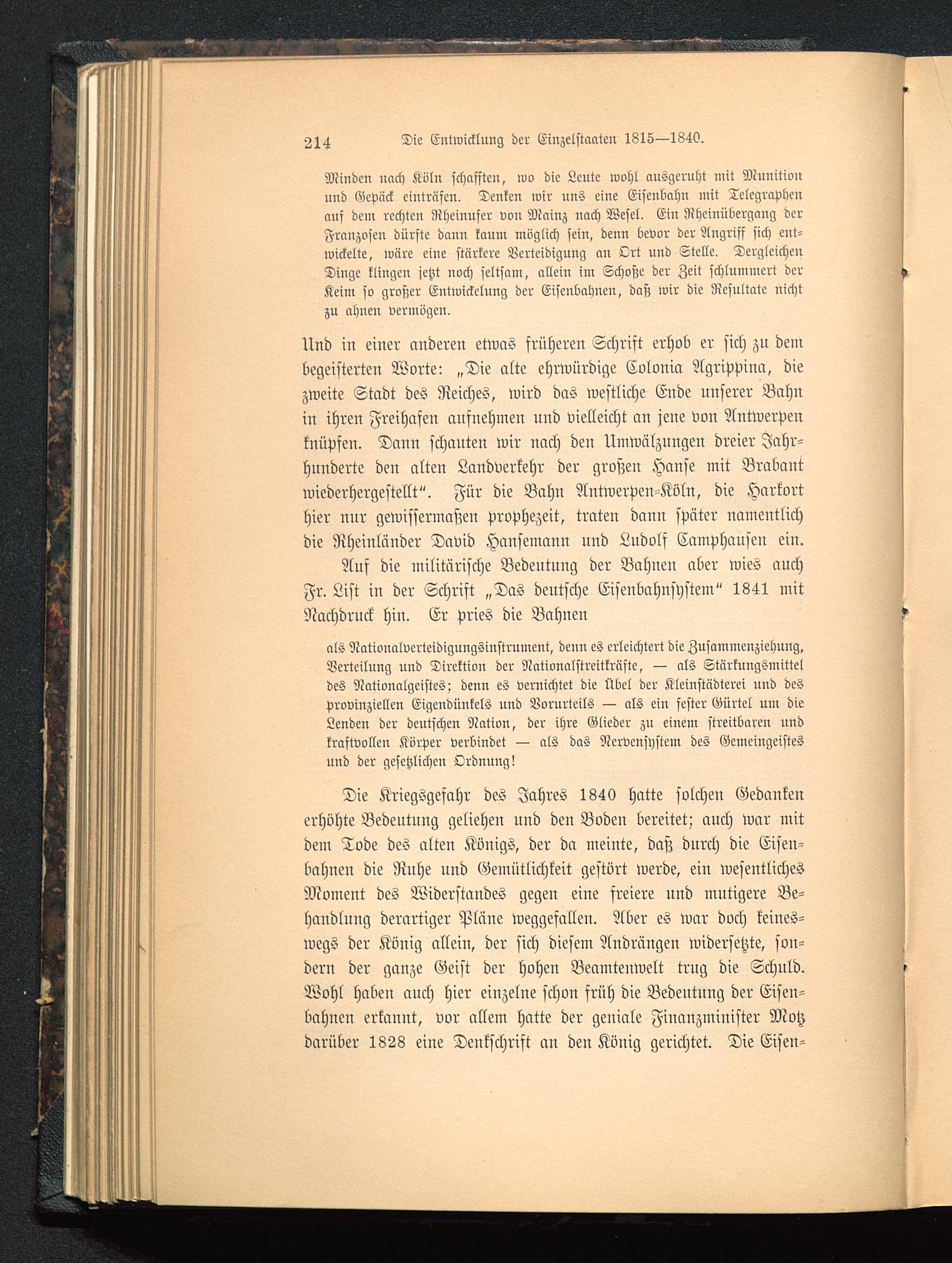 Auf die militärische Bedeutung der Bahnen aber wies auchFr. List in der Schrift „Das deutsche Eiseitbahnsystem" 1841 mitNachdruck hin. Er pries die Bahnen