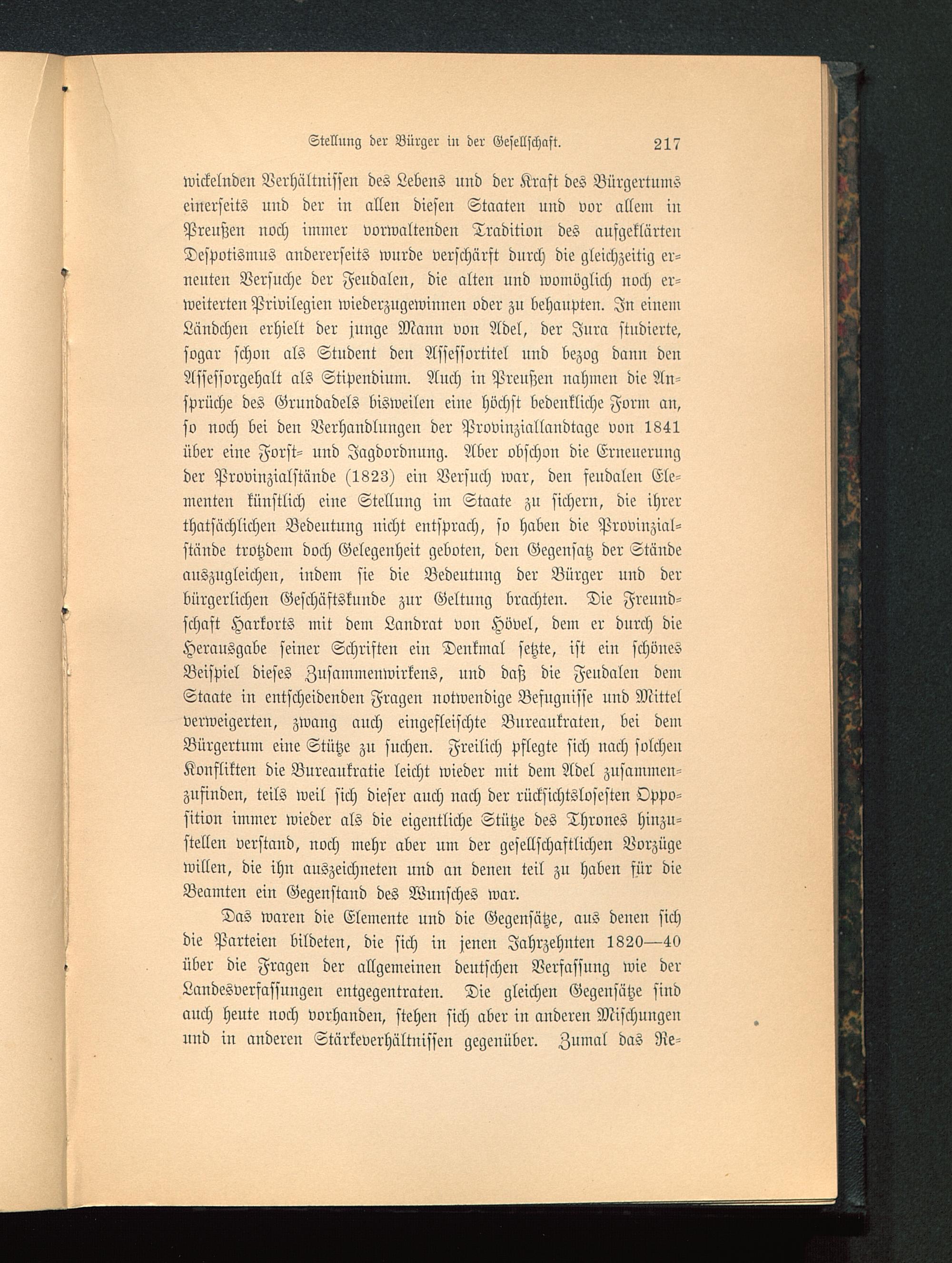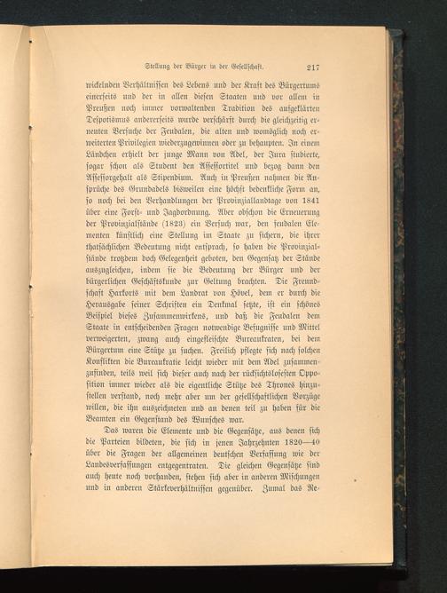 wickelnden Verhältnissen des Lebens und der Kraft des Bürgertumseinerseits und der in allen diesen Staaten und vvr allem inPreußen noch immer vorwaltenden Tradition des ausgeklärtenDespotismus andererseits wurde verschärft durch die gleichzeitig er-neuten Versuche der Feudalen, die alten und womöglich noch er-weiterten Privilegien wiederzugewinnen oder zu behaupten. In einemLändchen erhielt der jnnge Mann von Adel, der Jura studierte,sogar schon als Student den Assessortitel und bezog dann denAssessorgehalt als Stipendium. Auch in Preußen nahmen die An-sprüche deS Grundadels bisweilen eine höchst bedenkliche Form an,so noch bei den Verhandlungen der Provinziallandtage von 1841über eine Forst- und Jagdorduuug. Aber obschon die Erneuerungder Proviuzialstäude (1823) ein Versuch war, den seudalen Ele-menten künstlich eine Stellung im Staate zu sichern, die ihrerthatsächlichen Bedeutung nicht entsprach, so haben die Provinzial-stände trotzdem doch Gelegenheit geboten, den Gegensatz der Ständeauszugleichen, indem sie die Bedeutung der Bürger und derbürgerlichen Geschäftskunde zur Geltung brachten. Die Freund-schaft Harkorts mit den: Landrat von Hövel, dem er dnrch dieHerausgabe seiner Schriften ein Denkmal setzte, ist ein schönesBeispiel dieses Zusammenwirkens, und daß die Feudalen demStaate in entscheidenden Fragen notwendige Besngnisse und Mittelverweigerten, zwang auch eingefleischte Bureaukraten, bei demBürgertum eine Stütze zu suchen. Freilich pflegte sich nach solchenKonflikten die Bureaukratie leicht wieder mit dem Adel zusammen-zufinden, teils weil sich dieser auch nach der rücksichtslosesten Oppo-sition immer wieder als die eigentliche Stütze des Thrones hinzu-stellen verstand, noch mehr aber um der gesellschaftlichen Vorzügewillen, die ihn auszeichneten und an denen teil zu haben für dieBeamten ein Gegenstand des Wunsches war.