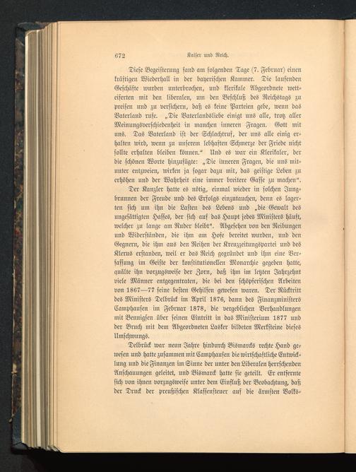 Delbrück war neun Jahre hindurch Bismarcks rechte Hand ge-wesen und hatte zusammen mit Camphausen die wirtschaftliche Entwick-lung und die Finanzen im Sinne der unter den Liberalen herrschendenAnschauungen geleitet, und Bismarck hatte sie geteilt. Er entferntesich von ihnen vorzugsweise unter dem Einfluß der Beobachtung, daßder Druck der preußischen Klassensteuer auf die ärmsten Volks-