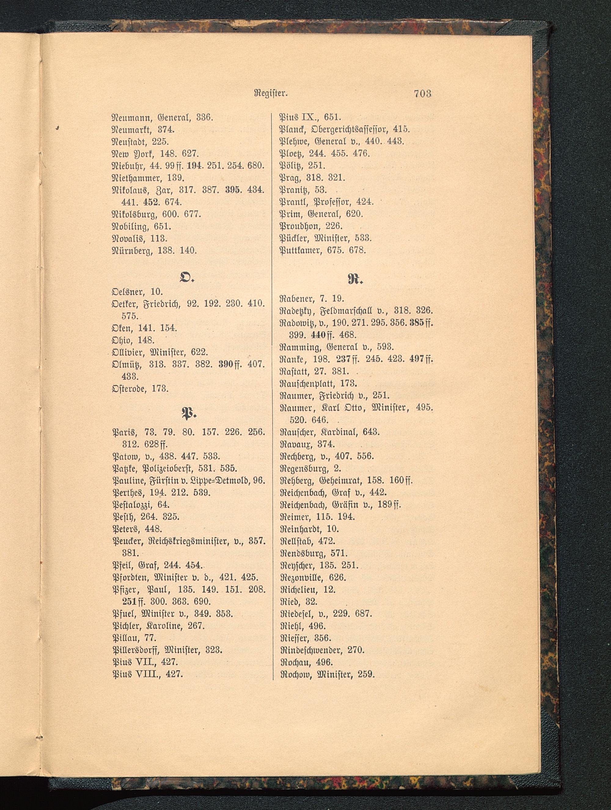 441. 452. 674.Nikolsburg , 600. 677.Nobiling, 651.Novalis , 113.Nürnberg , 138. 140.