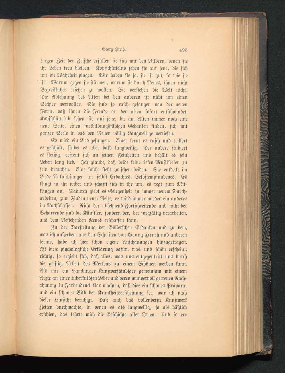 Zu der Darstellung der Göllerschen Gedanken und zu dem,was ich außerdem aus deu Schriften von Georg Hirth und anderenlernte, habe ich hier schon eigene Anschauungen hinzugetragen.Ist diese psychologische Erklärung dafür, was uns schön erscheint,richtig, so ergiebt sich, daß alles, was uns entgegentritt uns durchdie geistige Arbeit des Merkeus zu einem Schönen werden kann.Als mir ein Hamburger Kunstverständiger gemeinsam mit einemArzte an einer tuberkulösen Leber und deren wundervoll getreuen Nach-ahmung in Farbendruck klar machten, daß dies ein schönes Präparatund ein schönes Bild der Krankheitserscheinung sei, war ich nachdieser Hinsicht beruhigt. Daß auch das vollendetste KunstwerkZeiten durchmachte, in denen es als langweilig, ja als häßlicherschien, das lehrte mich die Geschichte aller Orten. Und so er-