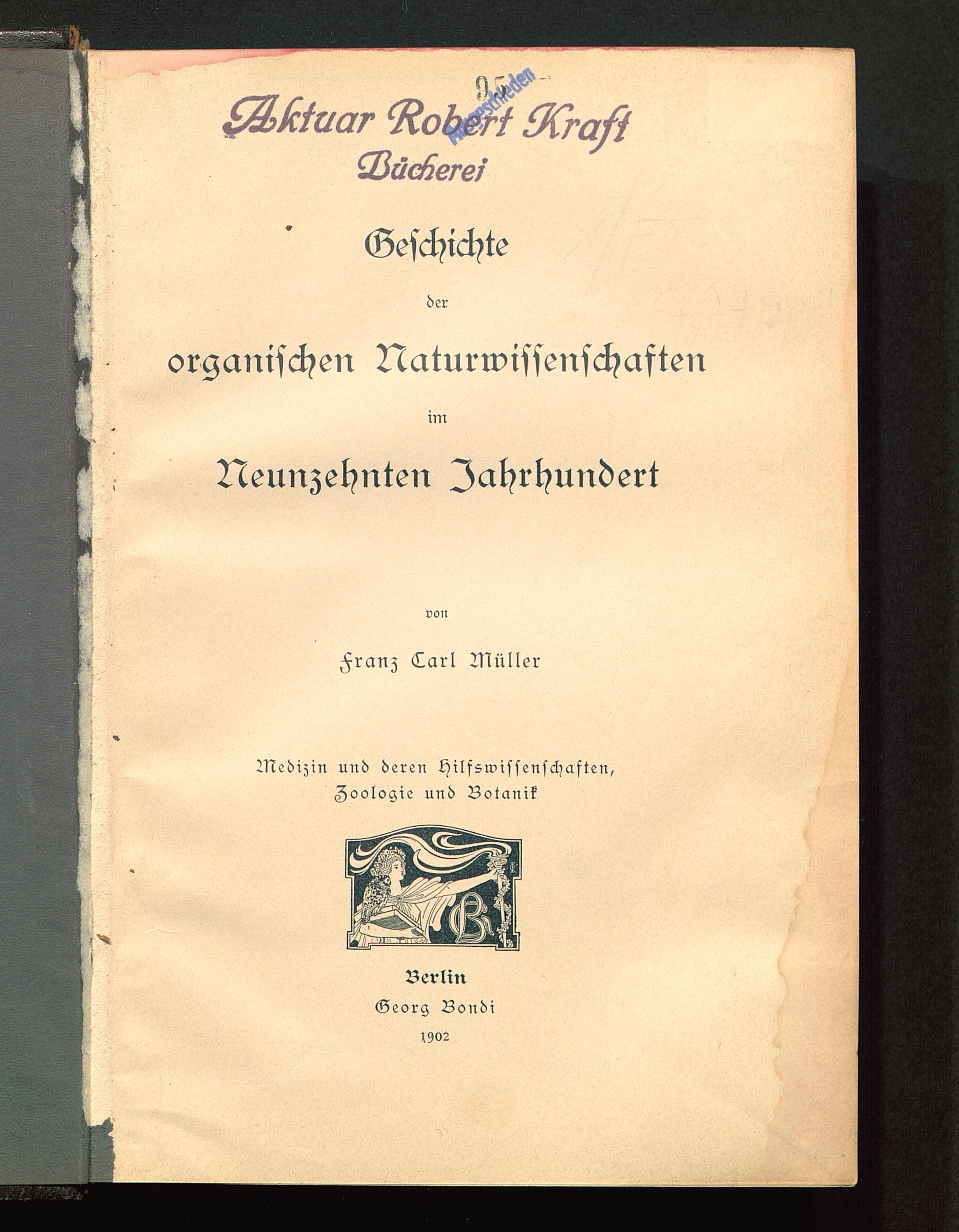 ^IF/e/^ KohF/2!c/0§6/'6/Geschichtederorganischen NaturwissenschaftenMINeunzehnten JahrhundertvonFranz Carl Müller Medizin und deren Hilfswissenschaften,Zoologie und BotanikBerlin Georg Bondi 1,902