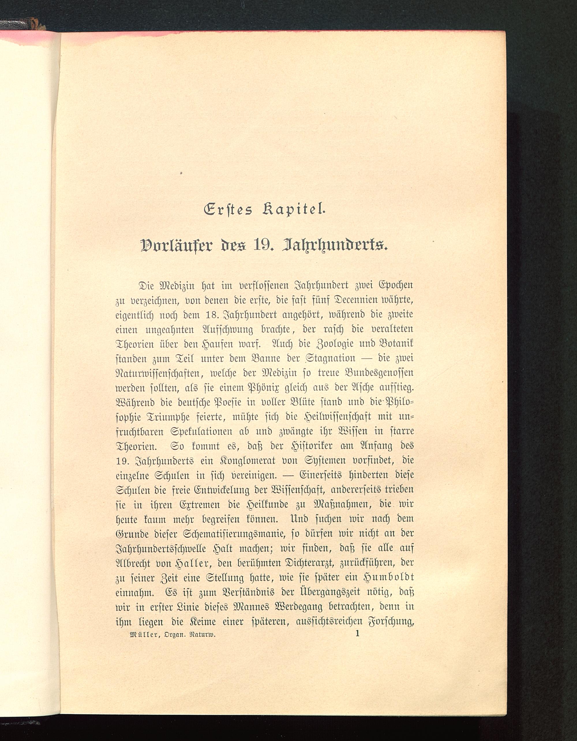 Die Medizin hat im verflossenen Jahrhundert zwei Epochenzu verzeichnen, von denen die erste, die fast fünf Decennien währte,eigentlich noch dem 18. Jahrhundert angehört, während die zweiteeinen ungeahnten Aufschwung brachte, der rasch die veraltetenTheorien über deu Haufen warf. Auch die Zoologie uud Botanikstanden zum Teil unter dem Banne der Stagnation — die zweiNaturwissenschaften, welche der Medizin so treue Bundesgenossenwerden sollten, als sie einem Phönix gleich aus der Asche aufstieg.Währeud die deutsche Poesie in voller Blüte stand uud die Philo-sophie Triumphe feierte, mühte sich die Heilwissenschaft mit un-fruchtbaren Spekulationen ab und zwängte ihr Wissen in starreTheorien. So kommt es, daß der Historiker am Anfang des19. Jahrhunderts ein Konglomerat von Systemen vorfindet, dieeinzelne Schulen in sich vereinigen. — Einerseits hinderten dieseSchulen die freie Entwickelung der Wissenschaft, andererseits triebensie in ihren Extremen die Heilkunde zu Maßnahmen, die wirhenke kaum mehr begreisen können. Und suchen wir nach demGrunde dieser Schematisieruugsmanie, so dürfen wir nicht an derJahrhundertsschwelle Halt machen; wir finden, daß sie alle aufAlbrecht von Haller , den berühmten Dichterarzt, zurückführen, derzu seiner Zeit eine Stellung hatte, wie sie später ein Humboldteinnahm. Es ist zum Verständnis der Übergangszeit nötig, daßwir in erster Linie dieses Mannes Werdegang betrachten, denn inihm liegen die Keime einer späteren, aussichtsreichen Forschung,