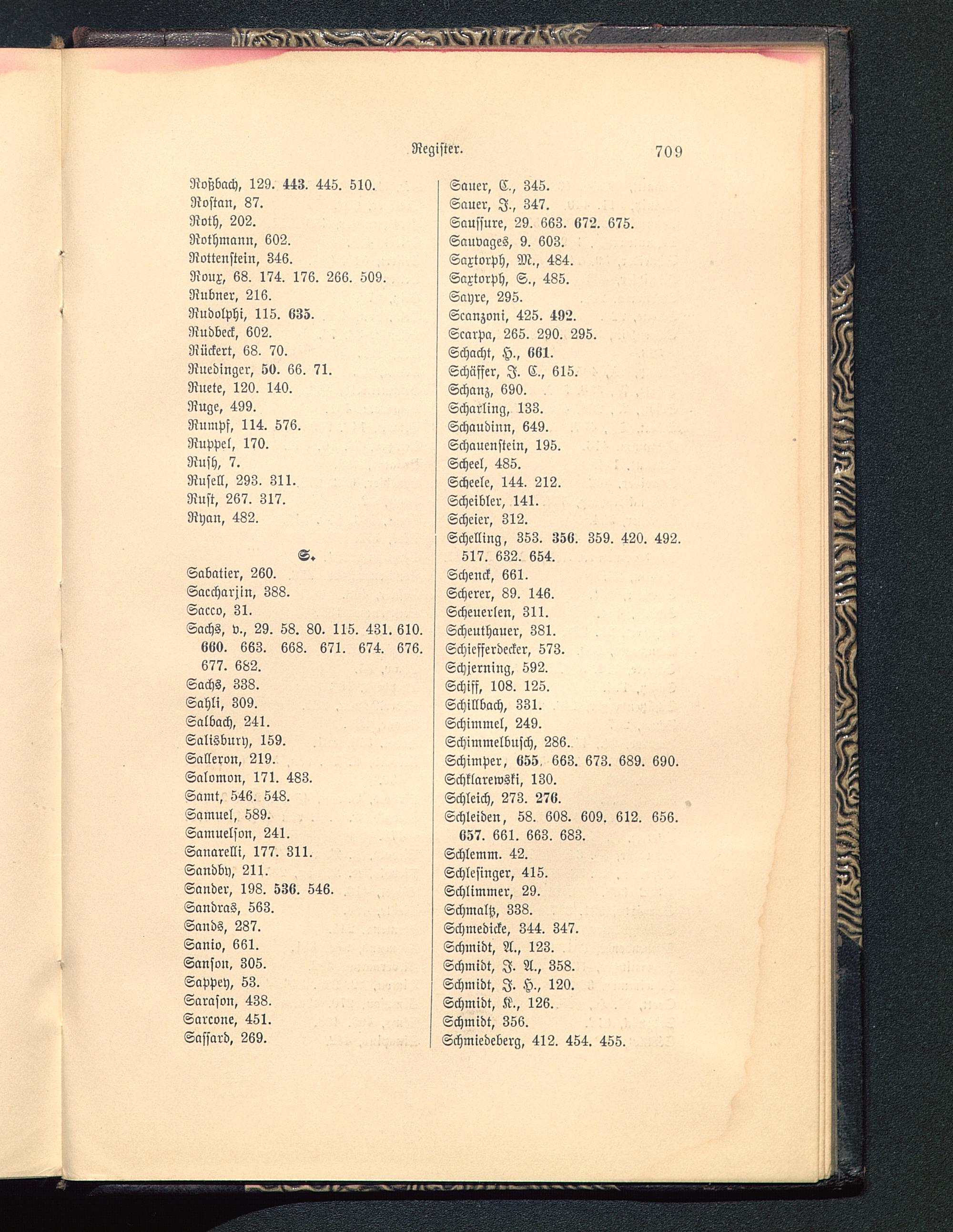 Sauer, C,, 345.Sauer, I., 347.Saussure , 29. 663. 672. 675.Sauvages, 9. 603.Saxtorph, M., 484.Saxtorph, S., 435.Sayre, 295.Scanzoni, 425. 492.Scarpa, 265. 290. 295.Schacht, H., «61.Schäffer, I. C., 615.Schanz, 690.Scharling, 133.Schaudinn , 649.Schauenstein, 195.Scheel, 485. , ,