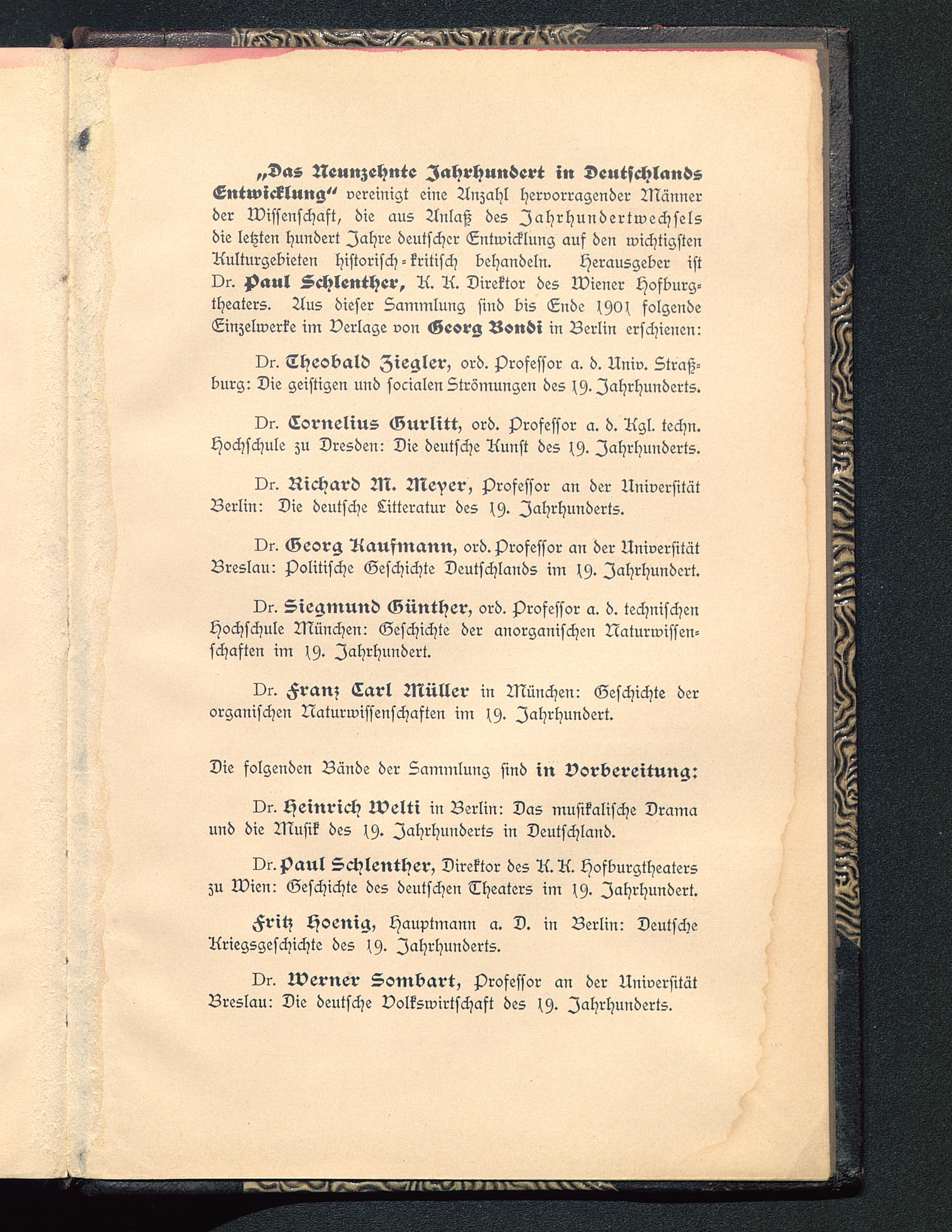 „Das Neunzehnte Jahrhundert in DeutschlandsEntwicklung" vereinigt eine Anzahl hervorragender Männerder Wissenschaft, die aus Anlaß des Jahr Hundertwechselsdie letzten hundert Jahre deutscher Entwicklung auf den wichtigstenAulturgebieten historisch-kritisch behandeln. Herausgeber istDr. j)aul Schlenther, A. A. Direktor des Wiener Hofburg-theaters. Aus dieser Sammlung sind bis Ende ^9^ folgendeLinzelwerke im Verlage von Georg Bsndi in Berlin erschienen: