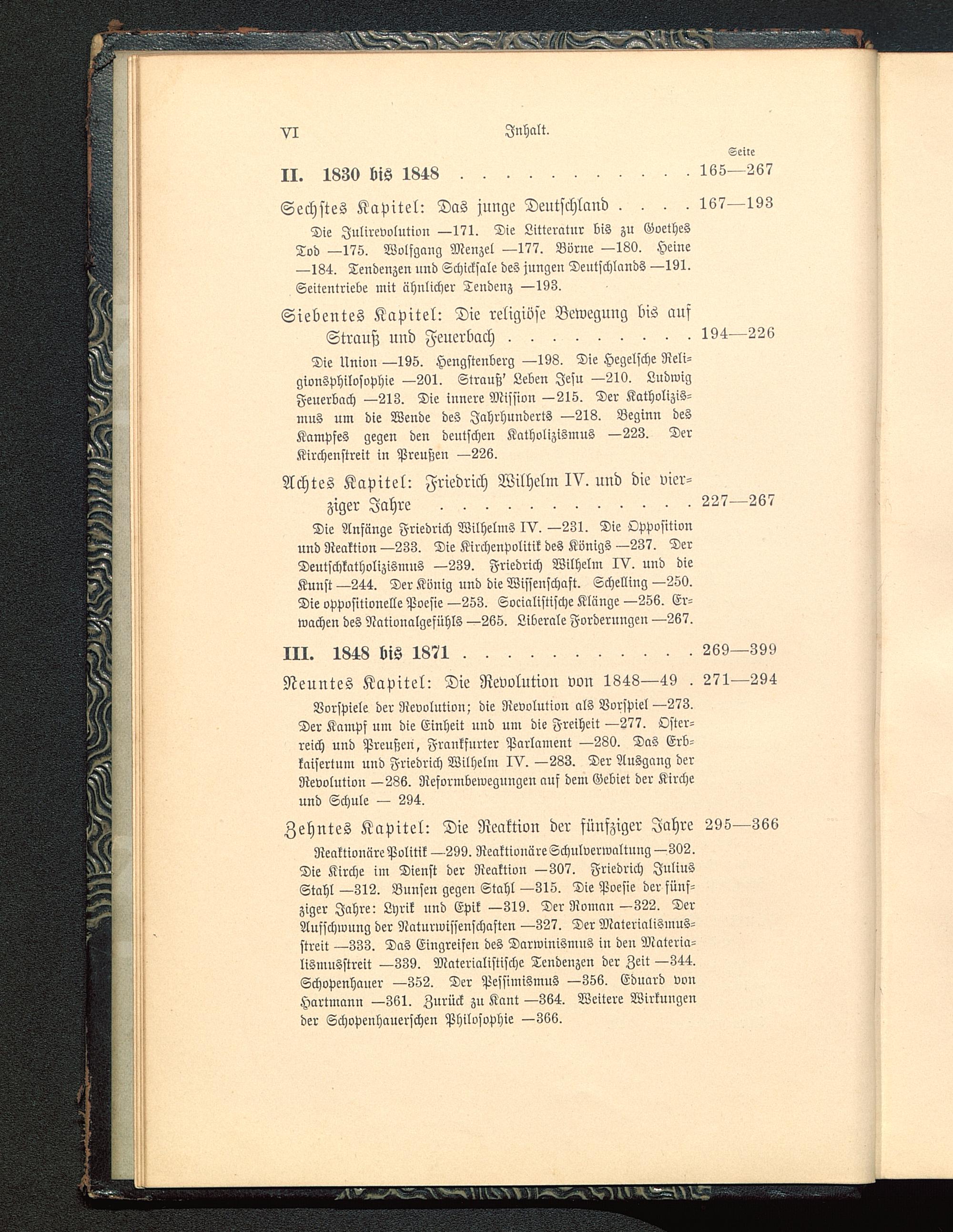 Vorspiele der Revolution; die Revolution als Vorspiel—273.Der Kampf um die Einheit und um die Freiheit —277. Oster-reich und Preußen, Frankfurter Parlament —280. Das Erb-kaisertum und Friedrich Wilhelm IV. —283. Der Ausgang derRevolution —286. Reformbewegungen auf dem Gebiet der Kircheund Schule — 294.