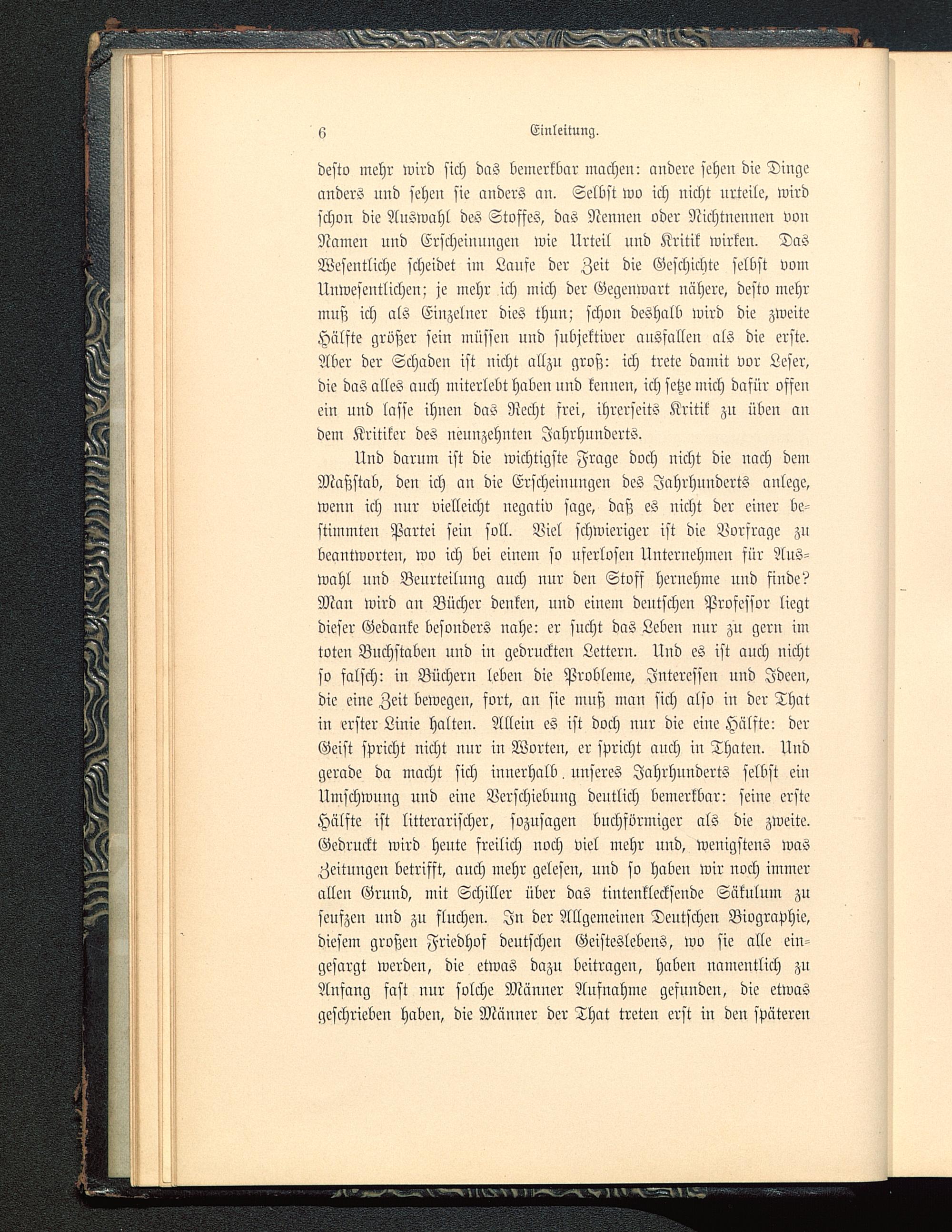 desto mehr wird sich das bemerkbar machen: andere sehen die Dingeanders und sehen sie anders an. Selbst wo ich nicht urteile, wirdschon die Auswahl des Stoffes, das Nennen oder Nichtnennen vonNamen und Erscheinungen wie Urteil und Kritik wirken. DasWesentliche scheidet im Lause der Zeit die Geschichte selbst vomUnwesentlichen: je mehr ich mich der Gegenwart nähere, desto mehrmuß ich als Einzelner dies thun; schon deshalb wird die zweiteHalste größer sein müssen und subjektiver ausfallen als die erste.Aber der Schaden ist nicht allzu groß: ich trete damit vor Leser,die das alles auch miterlebt haben und kennen, ich setze mich dafür offenein und lasse ihnen das Recht frei, ihrerseits Kritik zn üben andem Kritiker des neunzehnten Jahrhunderts.