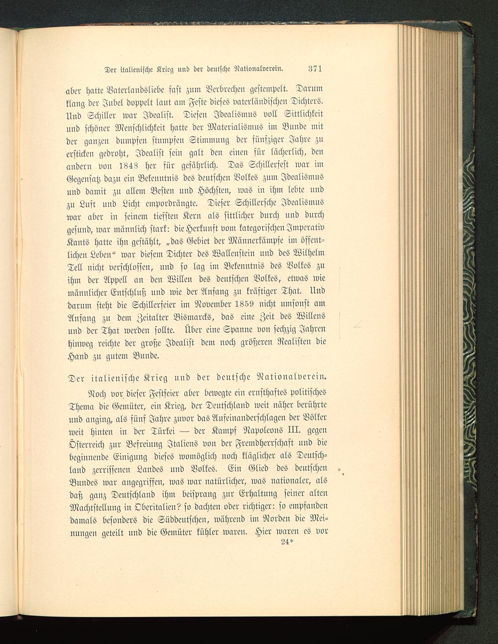 aber hatte Vaterlandsliebe fast zum Verbrechen gestempelt. Darumklaug der Jubel doppelt laut am Feste dieses vaterläudischeu Dichters.Und Schiller war Idealist. Diesen Idealismus voll Sittlichkeitund schöner Menschlichkeit hatte der Materialismus im Bunde mitder ganzen dumpfen stumpfen Stimmung der fünfziger Jahre zuersticken gedroht, Idealist sein galt den einen für lächerlich, denandern von 1843 her für gefährlich. Das Schillerfest war imGegensatz dazu ein Bekenntnis des dentscheu Volkes zum Idealismusund damit zu allem Besten uud Höchsten, was in ihm lebte undzu Luft uud Licht empordrängte. Dieser Schillersche Idealismuswar aber in seinem tiefsten Kern als sittlicher durch lind dnrchgesund, war männlich stark: die Herkunft vom kategorischen ImperativKants hatte ihu gestählt, „das Gebiet der Mäuucrkämpfe im öffent-licheu Lebeil" war diesem Dichter des Wallenstein und des WilhelmTell uicht verschlossen, und so lag im Bekenntnis des Volkes zuihm der Appell an den Willen des deutschen Volkes, etwas wiemännlicher Entschlnß und wie der Ansang zu kräftiger That. Unddarum steht die Schillerseier im November 1859 uicht umsonst amAnsang zu dem Zeitalter Bismarcks, das eine Zeit des Willensund der That werden sollte. Über eine Spanne von sechzig Jahrenhinweg reichte der große Idealist dem noch größeren Realisten dieHand zu gutem Buude.