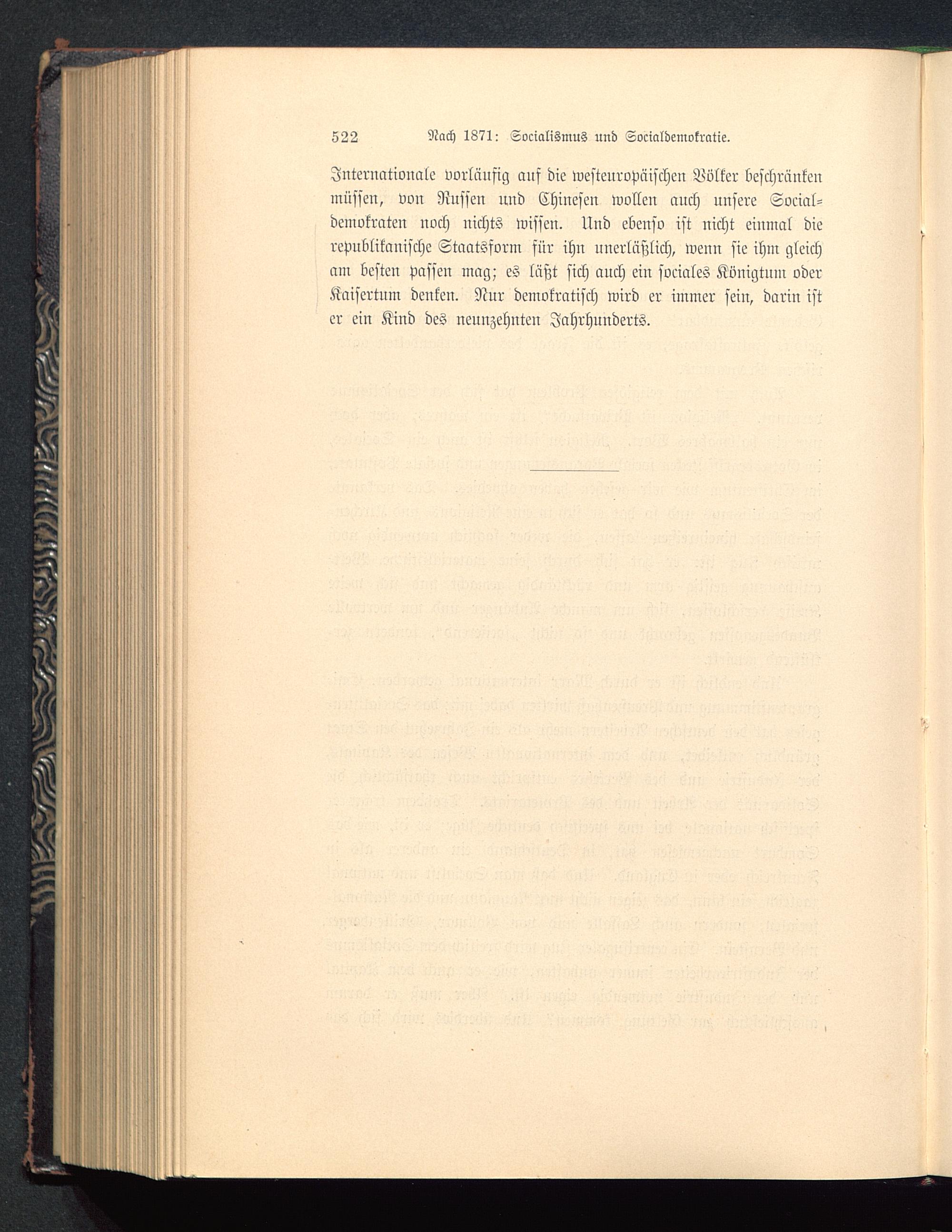 Internationale vorläufig auf die westeuropäischen Volker beschränkenmüssen, von Russen und Chinesen wollen auch unsere Social-demokraten noch nichts wissen, lind ebenso ist nicht einmal dierepublikanische Staatssorm für ihn unerläßlich, weuu sie ihm gleicham besteu Passen mag; es läßt sich auch ein sociales Königtum oderKaisertum denken. Nur demokratisch wird er immer sein, darin ister ein Kind des neunzehnten Jahrhunderts.
