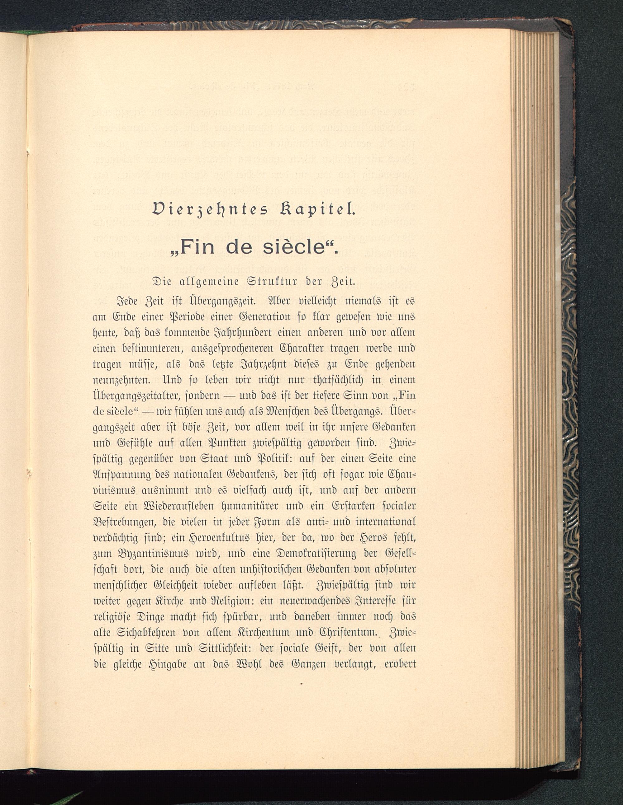 Jede Zeit ist Übergangszeit. Aber vielleicht niemals ist esam Ende einer Periode einer Generation so klar gewesen wie unsheute, daß das kommende Jahrhundert einen anderen und vor allemeinen bestimmteren, ausgesprocheneren Charakter tragen werde undtragen müsse, als das letzte Jahrzehnt dieses zu Ende gehendenneunzehnten. Und so leben wir nicht nur thatsächlich in einemÜbergaugszeitalter, sondern — und das ist der tiefere Sinn von „?incle 8idvls" — wir fühlen nns auch als Menschen des Übergangs. Über-gangszeit aber ist böse Zeit, vor allem weil in ihr unsere Gedankenund Gesühle auf allen Punkten zwiespältig geworden sind. Zwie-spältig gegenüber von Staat und Politik: auf der einen Seite eineAnspannung des uationalen Gedankens, der sich ost sogar wie Chau-vinismus ausnimmt und es vielfach auch ist, und auf der auderuSeite ein Wiederaufleben humanitärer und ein Erstarken socialerBestrebungen, die vielen in jeder Form als anti- und internationalverdächtig sind; eiu Heroenknltus hier, der da, wo der Heros sehlt,zum Byzantinismus wird, und eine Demokratisierung der Gesell-schaft dort, die auch die alten unhistorischen Gedauken von absolutermenschlicher Gleichheit wieder aufleben läßt. Zwiespältig sind wirweiter gegen Kirche und Religion: ein neuerwacheudes Interesse fürreligiöse Dinge macht sich spürbar, und daneben immer noch dasalte Sichabkehren von allem Kirchentum und Christentum. Zwie-spältig in Sitte und Sittlichkeit: der sociale Geist, der von allendie gleiche Hingabc an das Wohl des Ganzen verlangt, erobert