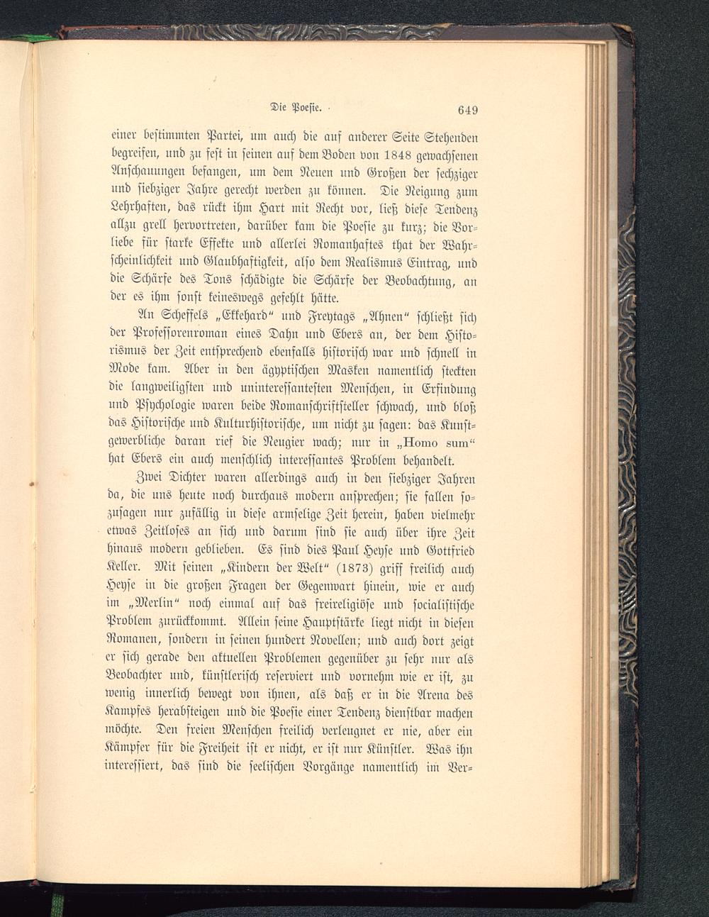 einer bestimmten Partei, um auch die auf anderer Seite Stehendenbegreifen, und zu fest in seinen auf dem Boden von 1848 gewachsenenAnschauungen befaugeu, um dem Neuen und Großen der sechzigernnd siebziger Jahre gerecht werden zu können. Die Neigung zumLehrhaften, das rückt ihm Hart mit Recht vor, ließ diese Tendenzallzn grell hervortreten, darüber kam die Poesie zu kurz; die Vor-liebe für starke Effekte und allerlei Romanhaftes that der Wahr-scheinlichkeit und Glaubhaftigkeit, also dem Realismus Eintrag, unddie Scharfe des Tons schädigte die Schärfe der Beobachtung, ander es ihm sonst keineswegs gefehlt hätte.