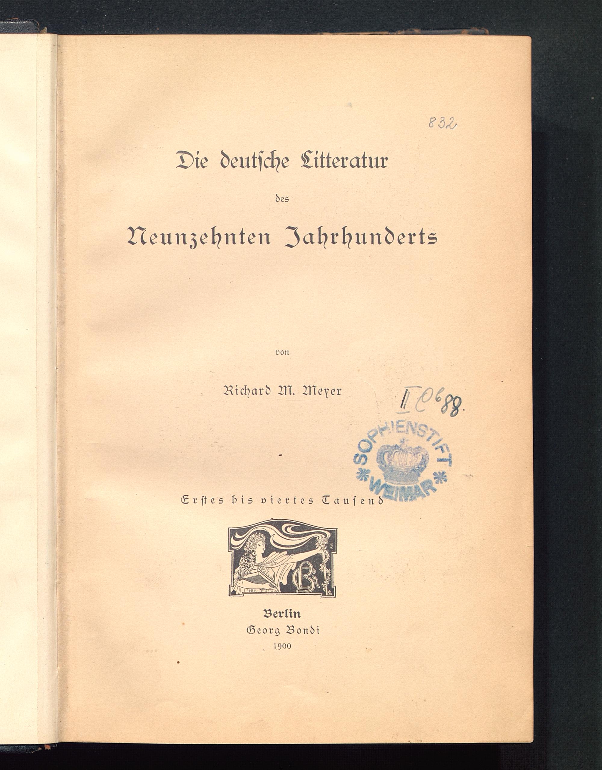 Die deutsche LitteraturdesNeunzehnten JahrhundertsvonRichard AI. TNeserErstes bis viertes Tausend^c5^-^ ^w ^ ° > -^MWÄM,n ^>Berlin Georg Bondi ^oo