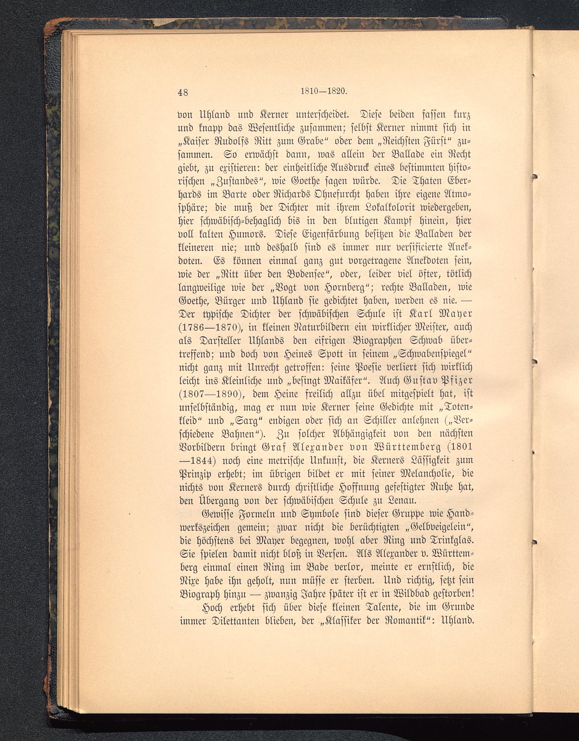 Hoch erhebt sich über diese kleinen Talente, die im Grundeimmer Dilettanten blieben, der „Klassiker der Romantik": Uhland .