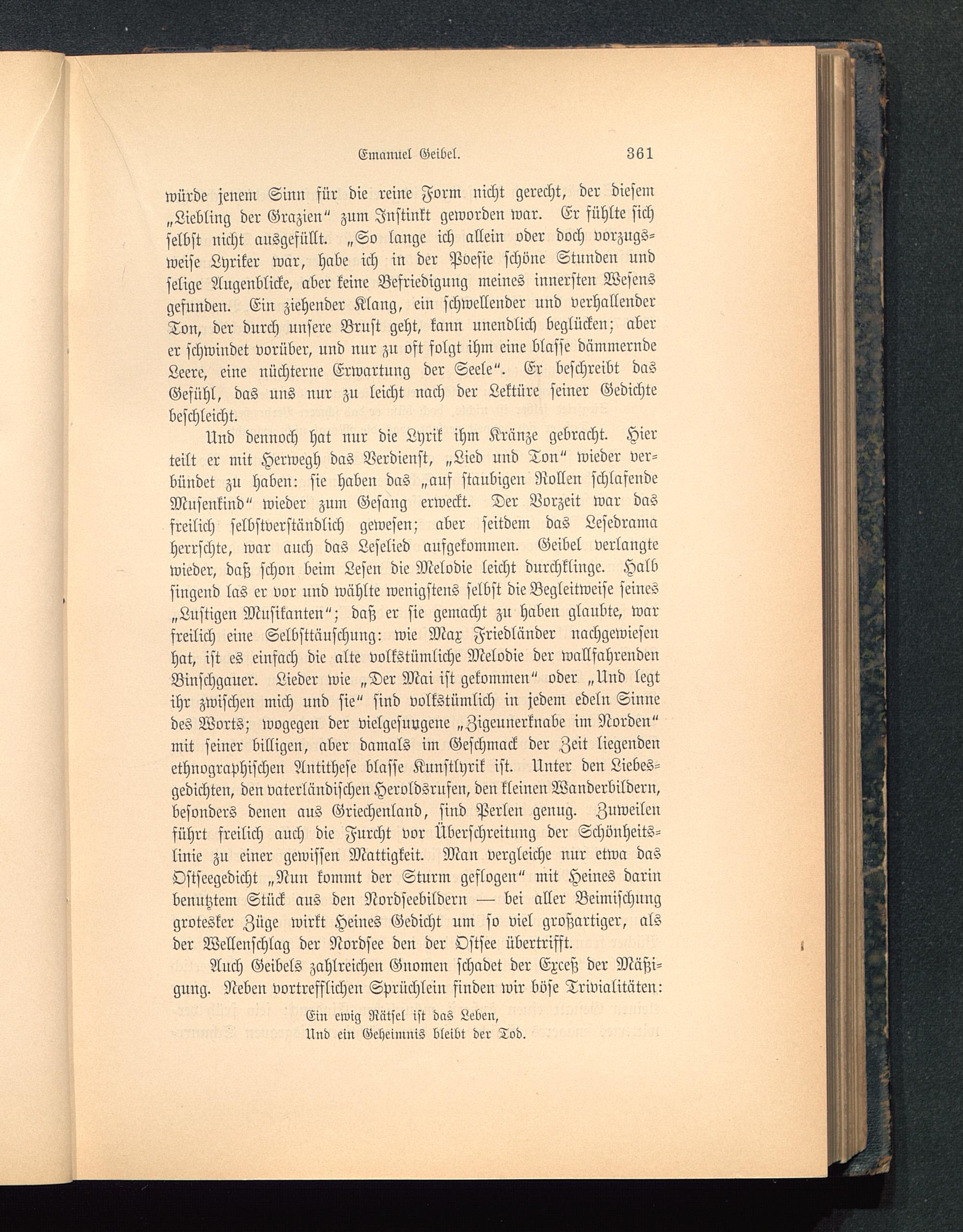 Anch Geibels zahlreichen Gnomen schadet der Exceß der Mäßi-gung. Neben vortrefflichen Sprüchlein finden wir böse Trivialitäten: