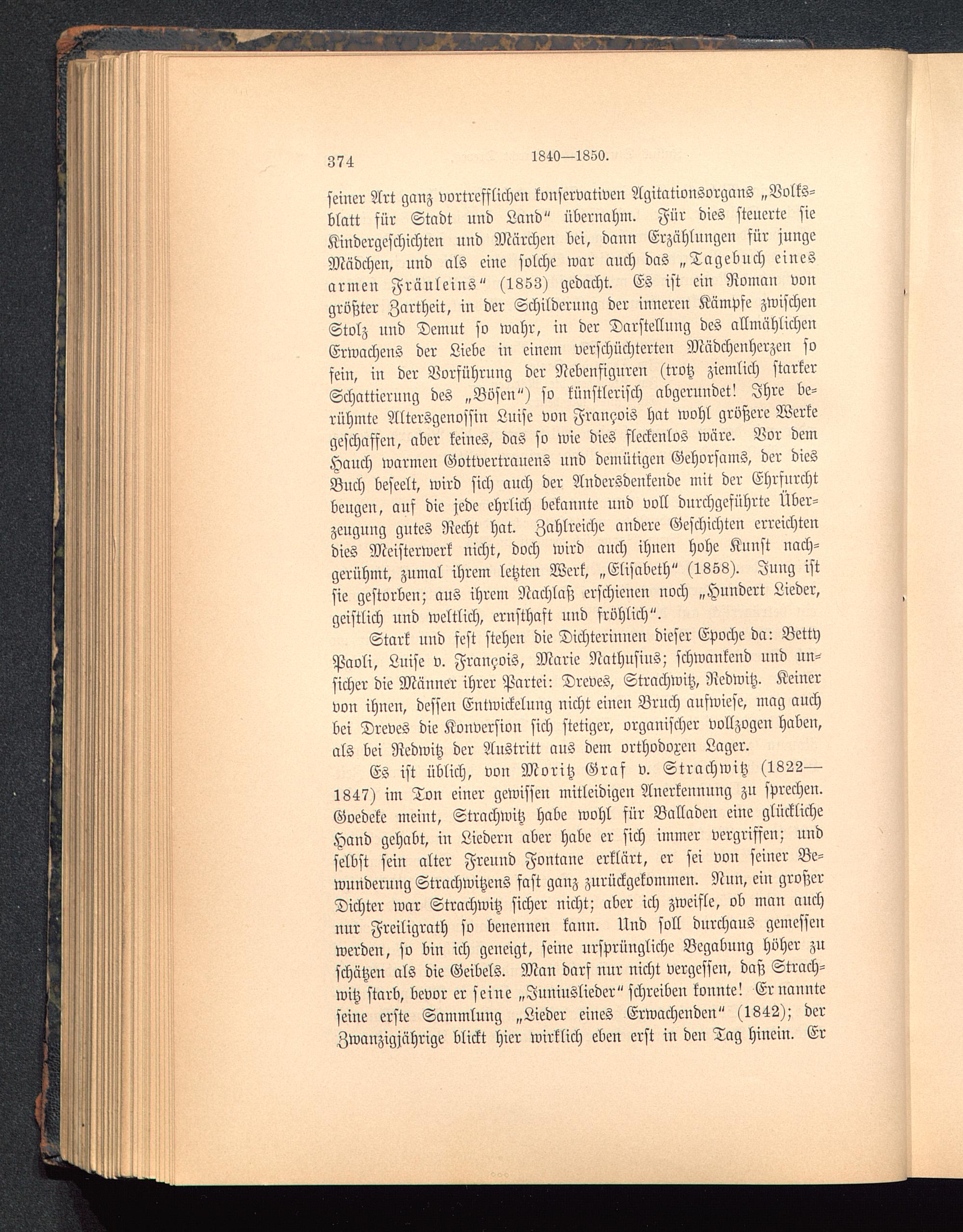 Stark und fest stehen die Dichterinnen dieser Epoche da: BettyPaoli, Lnise v. Fran^ois, Marie Nathnsius; schwankend nnd un-sicher die Männer ihrer Partei: Dreves, Strachwitz, Redwitz . Keinervon ihnen, dessen Entwickelung nicht einen Brnch nnfwiese, mag auchbei Dreves die Konversion sich stetiger, organischer vollzogen haben,als bei Redwitz der Anstritt aus dem orthodoxen Lager.