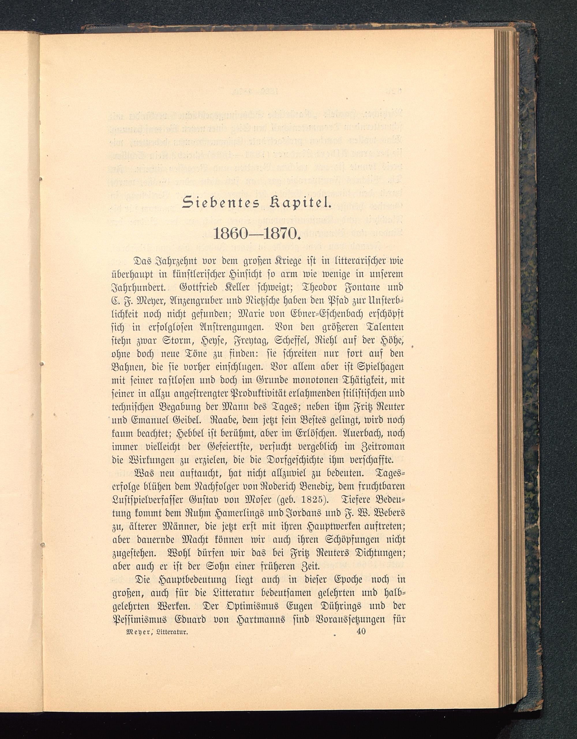 Was neu auftaucht, hat nicht allzuviel zu bedeuten. Tages-erfolge blühen dem Nachfolger von Roderich Benedix , dem fruchtbarenLustspielverfasser Gustav von Moser (geb. 1825). Tiefere Bedeu-tung kommt dem Ruhm Hamerlings und Jordans und F. W. Weberszu, älterer Männer, die jetzt erst mit ihren Hauptwerken auftreten;aber dauernde Macht können wir auch ihren Schöpfungen nichtzugestehen. Wohl dürfen wir das bei Fritz Reuters Dichtungen;aber auch er ist der Sohn einer früheren Zeit.
