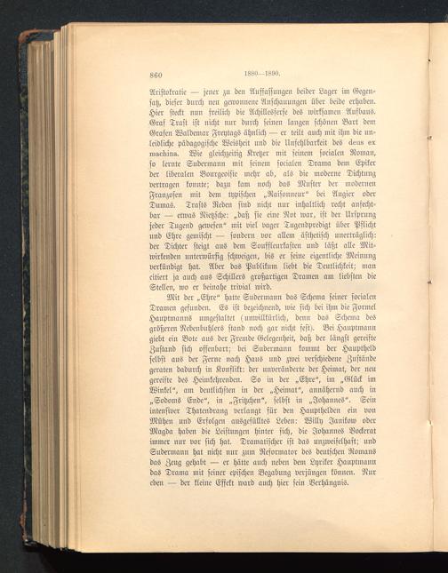 Aristokratie — jener zu den Auffassungen beider Lager im Gegen-satz, dieser durch neu gewonnene Anschauungen über beide erhaben.Hier steckt nun freilich die Achillesferse des wirksamen Aufbaus.Graf Traft ist nicht nur durch seinen langen schönen Bart demGrafen Waldemar Freytags ähnlich — er teilt auch mit ihm die un-leidliche pädagogische Weisheit und die Unfehlbarkeit des äeus exing.ellink>.. Wie gleichzeitig Kretzer mit seinem socialen Roman,so lernte Sudermanu mit seinem socialen Drama dem Epikerder liberalen Bourgeoisie mehr ab, als die moderne Dichtungvertragen konnte; dazu kam noch das Muster der modernenFranzosen mit dem typischen „Raisonneur" bei Augier oderDumas . Trusts Reden sind nicht nnr inhaltlich recht anfecht-bar — etwas Nietzsche: „daß sie eine Not war, ist der Ursprnngjeder Tugend gewesen" mit viel vager Tugendpredigt über Pflichtund Ehre gemischt — sondern vor allem ästhetisch unerträglich:der Dichter steigt aus dem Souffleurkasten und laßt alle Mit-wirkenden unterwürfig schweigen, bis er seine eigentliche Meinungverkündigt hat. Aber das Publikum liebt die Deutlichkeit; mancitiert ja auch aus Schillers großartigen Dramen am liebsten dieStellen, wo er beinahe trivial wird.