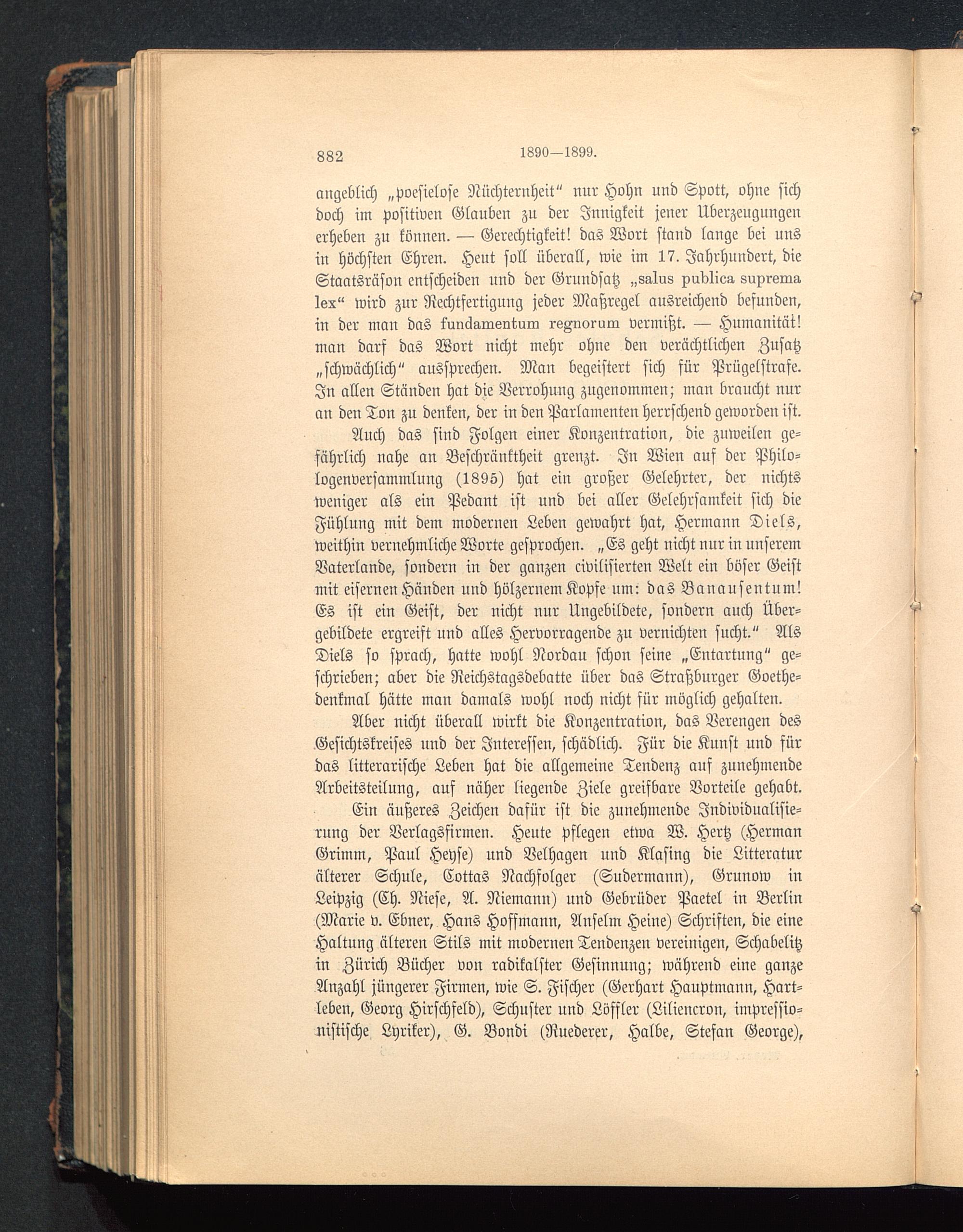 Aber nicht überall wirkt die Konzentration, das Verengen desGesichtskreises und der Interessen, schädlich. Für die Kunst und fürdas litterarische Leben hat die allgemeine Tendenz auf zunehmendeArbeitsteilung, auf näher liegende Ziele greifbare Vorteile gehabt.