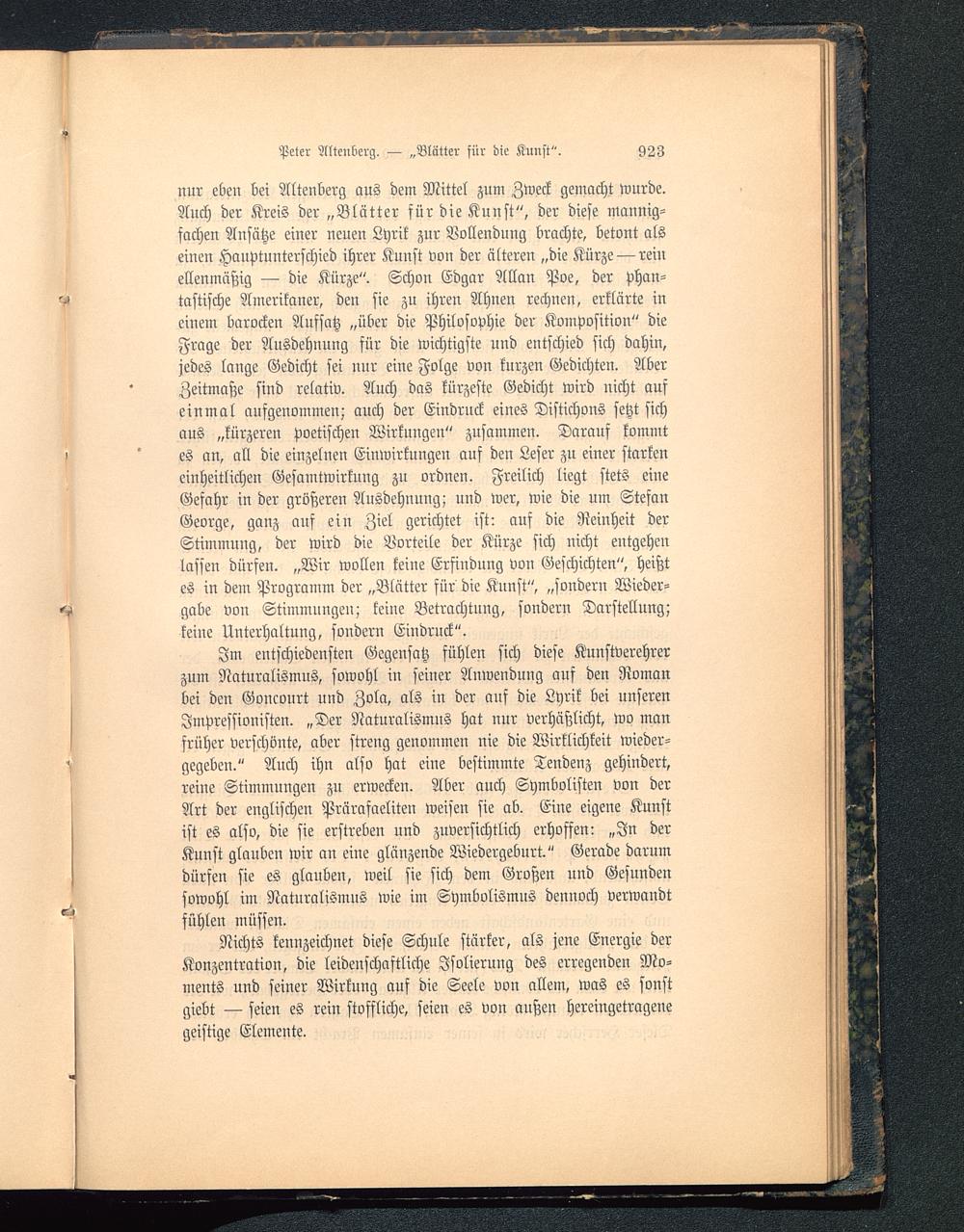 Nichts kennzeichnet diese Schule stärker, als jene Energie derKonzentration, die leidenschaftliche Isolierung des erregenden Mo-ments und seiner Wirkung auf die Seele von allein, was es sonstgiebt — seien es rein stoffliche, seien es von außen hereingetragenegeistige Elemente.