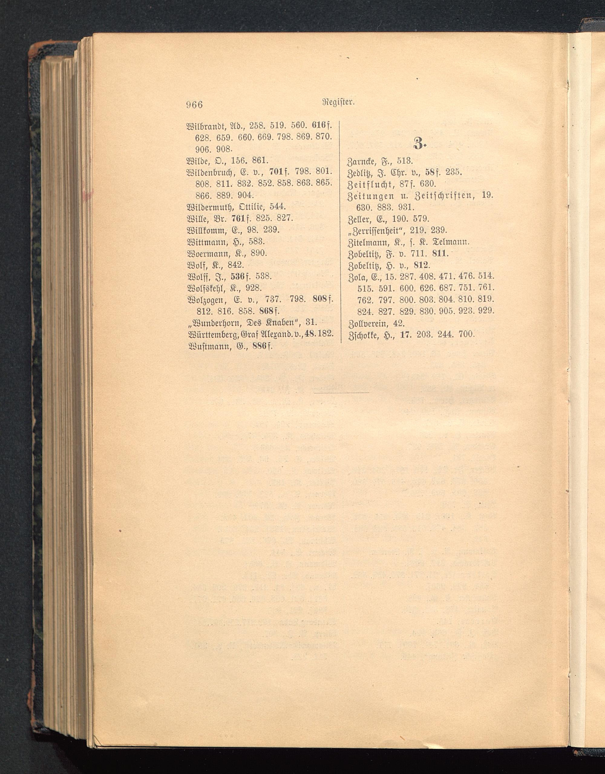 630. 883. 931.Zeller, E., 190. 579.„Zerrissenheit", 219. 239.Zitelniann, K., s. K. Telmann.Zobeltitz, F. v. 711. 811.Zobeltitz, H. v., 812.Zola. E., 15. 287. 403. 471. 476. 514.