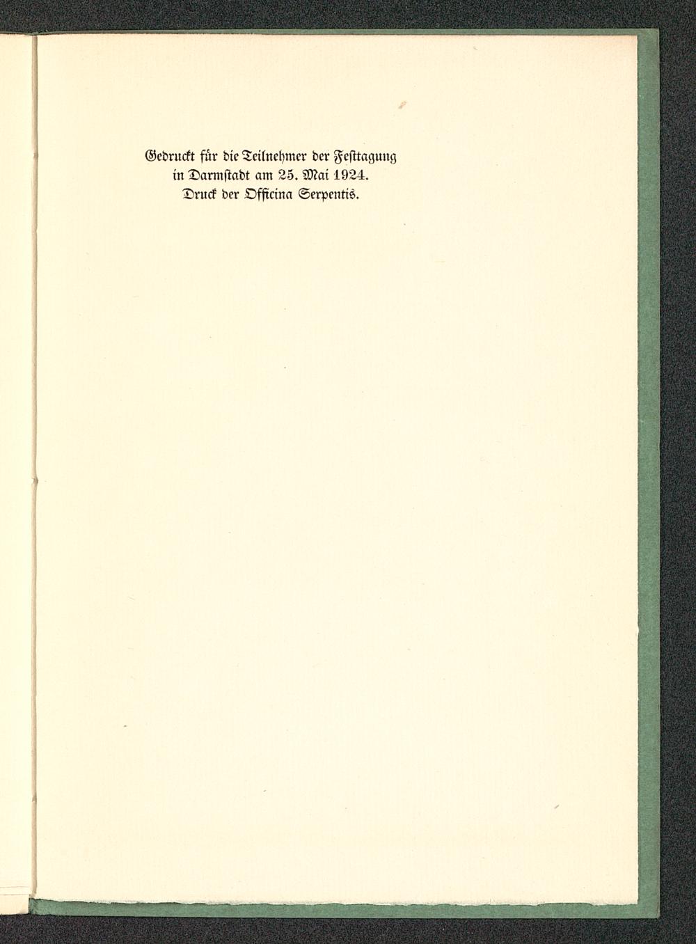 Gedruckt für die Teilnehmer der Fcsttagungin Darmstadt am 25. Mai 1924.Druck der Officina Serpentis.
