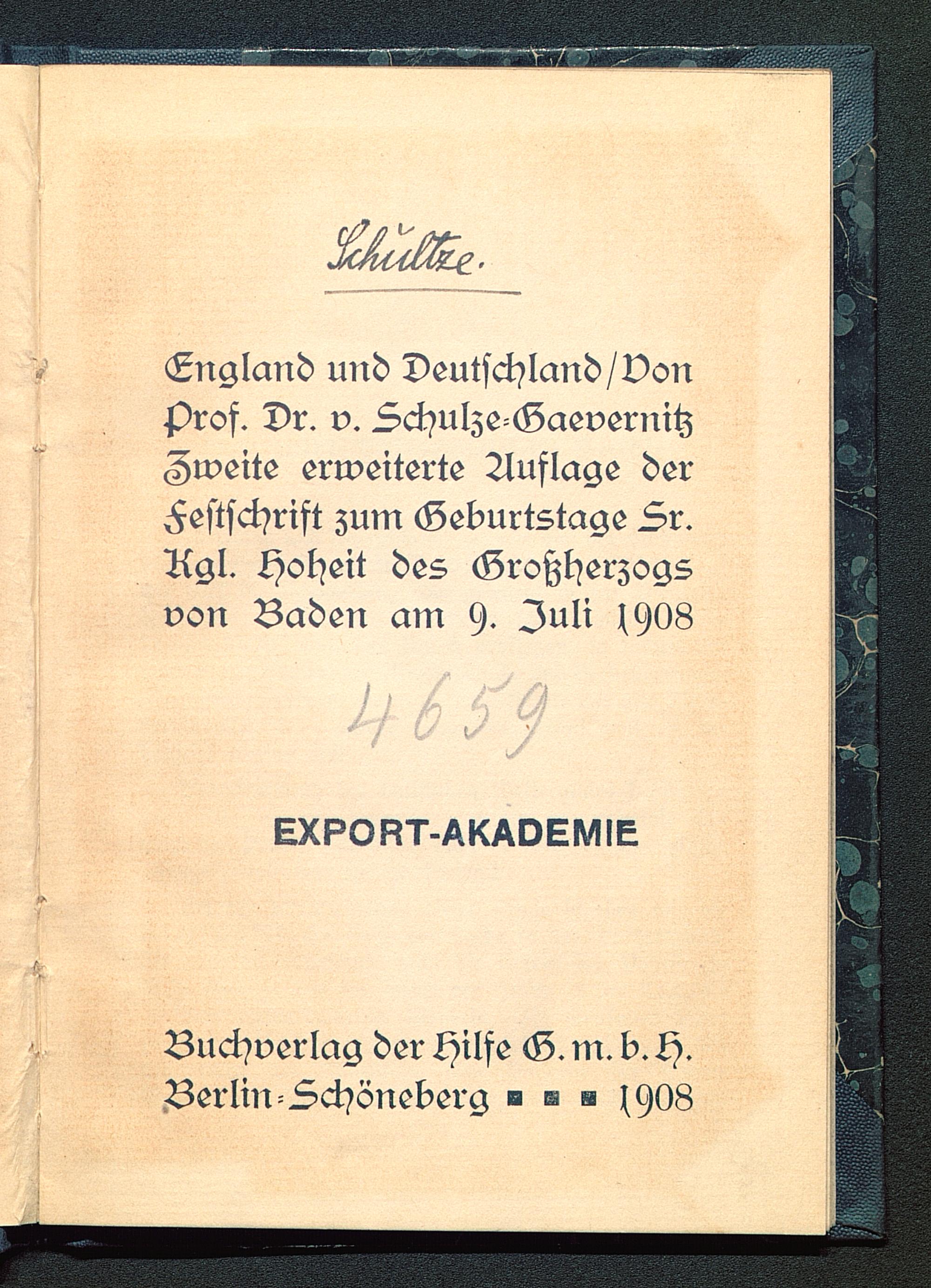 England und Deutschland/Von Prof. Dr. r>. Schulze-GaevernitzZweite erweiterte Auflage derFestschrift zum Geburtstage Sr.Rgl. Hoheit des Großherzogsvon Baden am 9. ^uli ^908