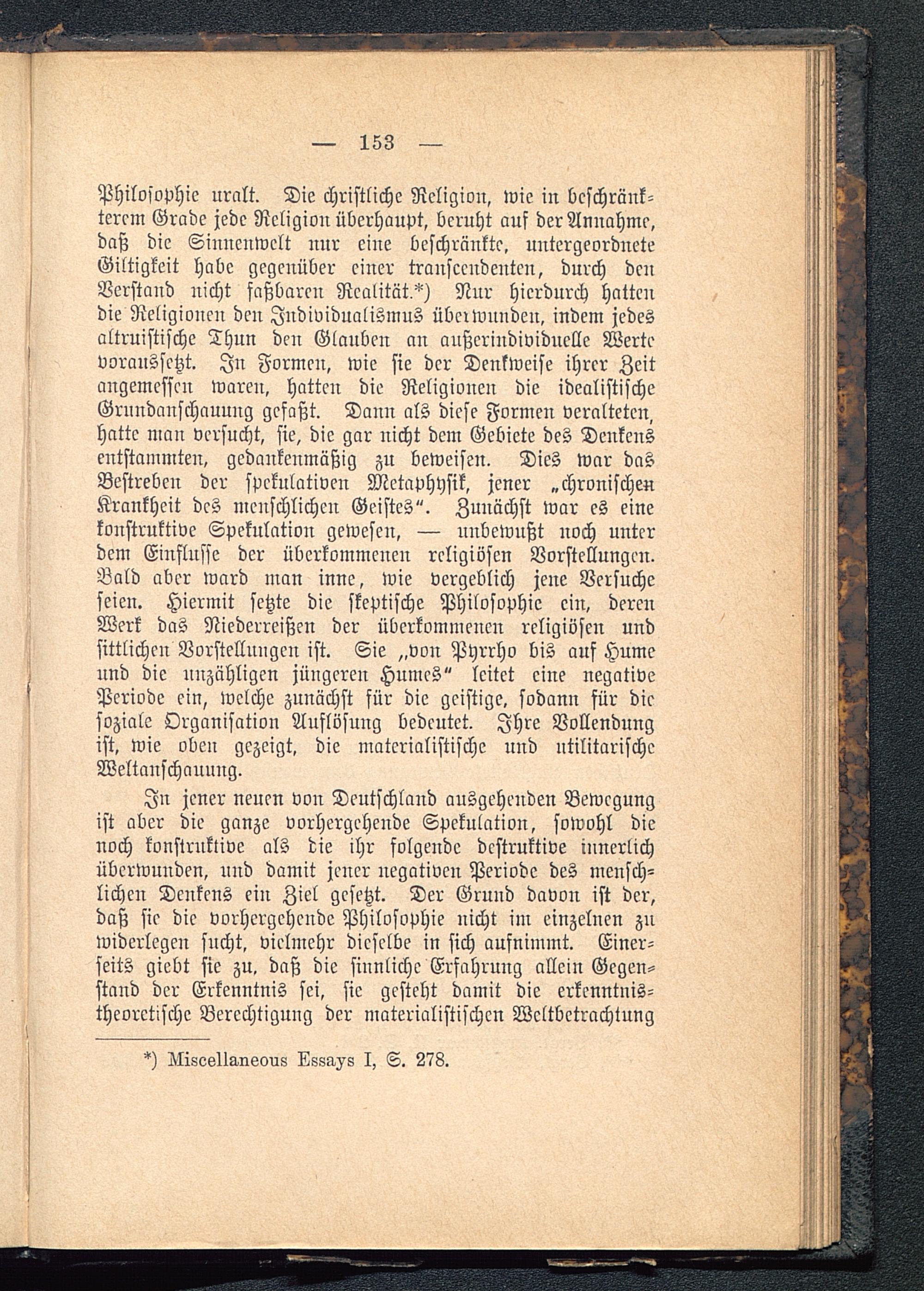 In jener neuen von Deutschland ausgehenden Bewegungist aber die ganze vorhergehende Spekulation, sowohl dienoch konstruktive als die ihr folgende destruktive innerlichüberwunden, und damit jener negativen Periode des mensch-lichen Denkens ein Ziel gesetzt. Der Gruud davou ist der,daß sie die vorhergehende Philosophie nicht im einzelnen zuwiderlegen sucht, vielmehr dieselbe in sich aufnimmt. Einer-seits giebt sie zu, daß die sinnliche Erfahrung allein Gegen-stand der Erkenntnis sei, sie gesteht damit die erkenntnis-thcorctische Berechtigung der materialistischen Wcltbetrachtung