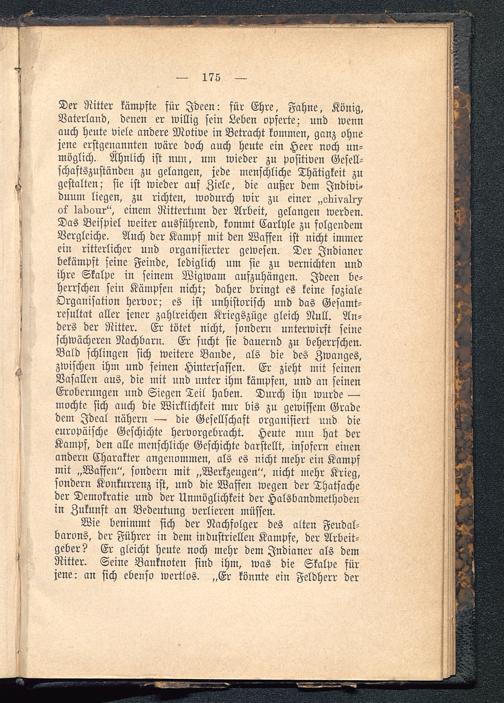 Wie benimmt sich der Nachfolger des alten Feudal-barons, der Führer in dem industriellen Kampfe, der Arbeit-geber? Er gleicht heute noch mehr dem Indianer als demRitter. Seine Banknoten sind ihm, was die Skalpe fürjene: an sich ebenso wertlos. „Er könnte ein Feldherr der
