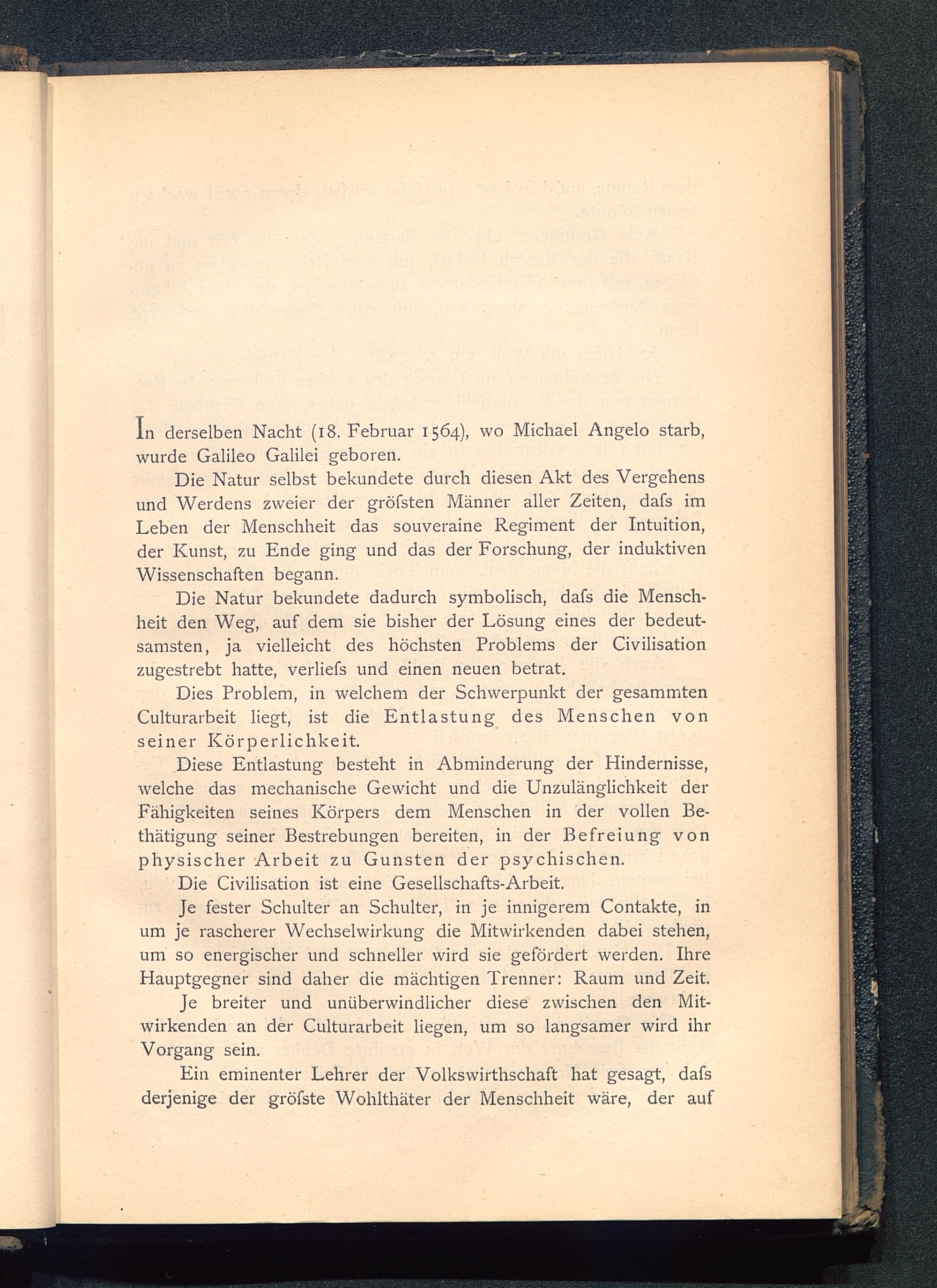 Dies Problem, in welchem der Schwerpunkt der gesammtenCulturarbeit liegt, ist die Entlastung des Menschen vonseiner Körperlichkeit.