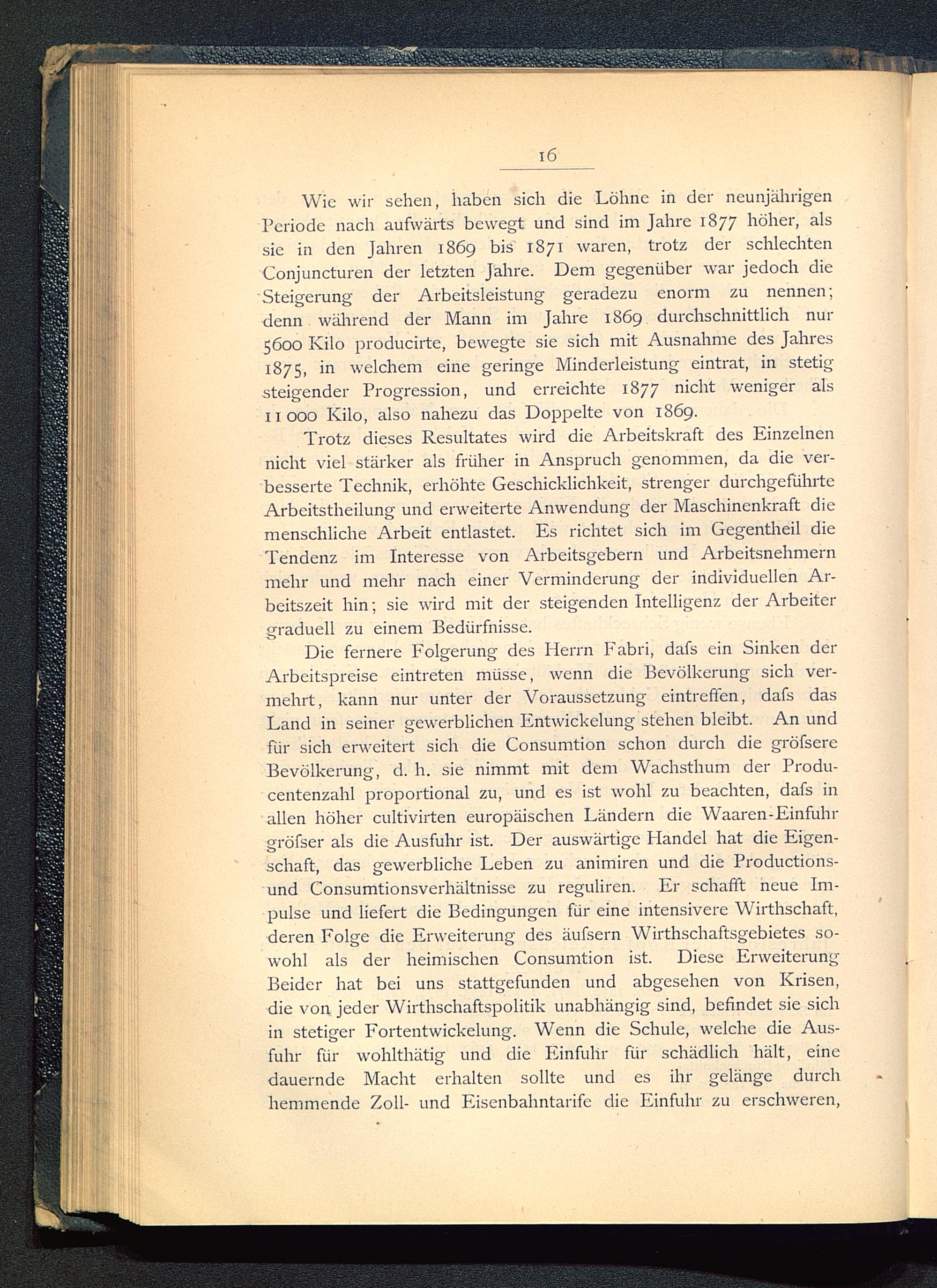 Die fernere Folgerung des Herrn Fabri, dafs ein Sinken derArbeitspreise eintreten müsse, wenn die Bevölkerung sich ver-mehrt, kann nur unter der Voraussetzung eintreffen, dafs dasLand in seiner gewerblichen Entwickelung stehen bleibt. An undfür sich erweitert sich die Consumtion schon durch die gröfsereBevölkerung, d. h. sie nimmt mit dem Wachsthum der Produ-centenzahl proportional zu, und es ist wohl zu beachten, dafs inallen höher cultivirten europäischen Ländern die Waaren-Einfuhrgröfser als die Ausfuhr ist. Der auswärtige Plandel hat die Eigen-schaft, das gewerbliche Leben zu animiren und die Productions-und Consumtionsverhältnisse zu reguliren. Er schafft neue Im-pulse und liefert die Bedingungen für eine intensivere Wirthschaft,deren Folge die Erweiterung des äufsern Wirthschaftsgebietes so-wohl als der heimischen Consumtion ist. Diese ErweiterungBeider hat bei uns stattgefunden und abgesehen von Krisen,die von jeder Wirthschaftspolitik unabhängig sind, befindet sie sichin stetiger Fortentwickelung. Wenn die Schule, welche die Aus-fuhr für wohlthätig und die Einfuhr für schädlich hält, einedauernde Macht erhalten sollte und es ihr gelänge durchhemmende Zoll- und Eisenbahntarife die Einfuhr zu erschweren,