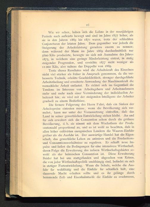 Trotz dieses Resultates wird die Arbeitskraft des Einzelnennicht viel stärker als früher in Anspruch genommen, da die ver-besserte Technik, erhöhte Geschicklichkeit, strenger durchgeführteArbeitstheilung und erweiterte Anwendung der Maschinenkraft diemenschliche Arbeit entlastet. Es richtet sich im Gegentheil dieTendenz im Interesse von Arbeitsgebern und Arbeitsnehmernmehr und mehr nach einer Verminderung der individuellen Ar-beitszeit hin; sie wird mit der steigenden Intelligenz der Arbeitergraduell zu einem Bedürfnisse.