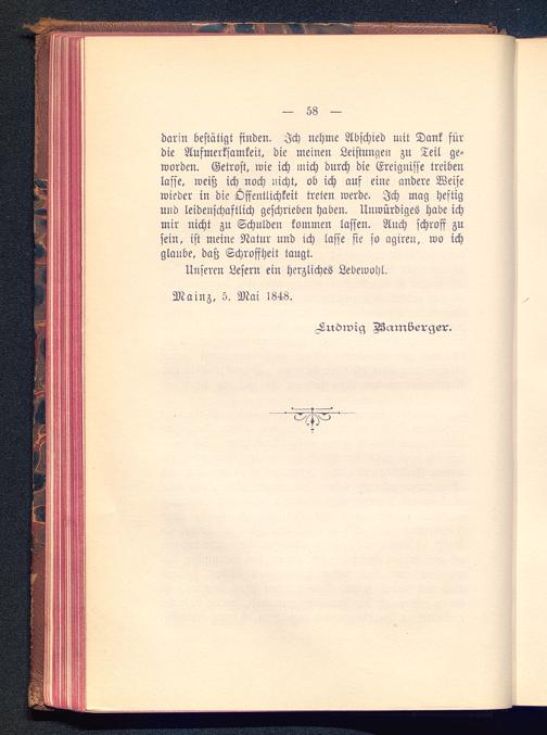 darin bestätigt finden. Ich nehme Abschied mit Dank fürdie Aufmerksamkeit, die meinen Leistungen zu Teil ge-worden. Getrost, wie ich mich durch die Ereignisse treibenlasse, weiß ich noch nicht, ob ich auf eine andere Weisewieder in die Öffentlichkeit treten werde. Ich mag heftigund leidenschaftlich geschrieben haben. Unwürdiges habe ichmir nicht zn Schulden kommen lassen. Auch schroff zusein, ist meine Natur und ich lasse sie so agiren, wo ichglaube, daß Schroffheit taugt.