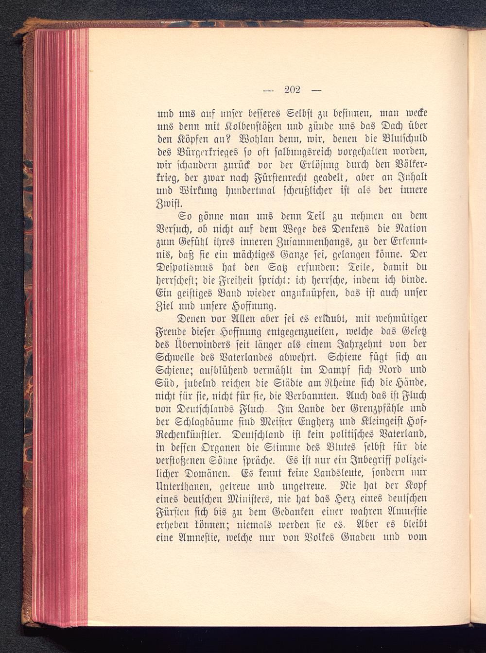 Denen vor Allen aber sei es erlaubt, mit wehmütigerFreude dieser Hoffnung entgegenzueilen, welche das Gesetzdes Überwinders seit länger als einem Jahrzehnt von derSchwelle des Vaterlandes abwehrt. Schiene fügt sich anSchiene; aufblühend vermählt im Dampf sich Nord undSüd, jubelud reicheu die Städte am Rheine sich die Hände,nicht für sie, nicht für sie, die Verbannten. Auch das ist Fluchvou Deutschlands Fluch. Im Lande der Grenzpfähle undder Schlagbäumc sind Meister Engherz und Kleingeist Hof -Rechenkünstler. Deutschland ist kein politisches Vaterland,in dessen Organen die Stimme des Blutes selbst für dieverstoßenen Söime spräche. Es ist nur ein Inbegriff polizei-licher Domänen. Es kennt keine Landsleute, sondern nurUnterthanen, getreue und ungetreue. Nie hat der Kopfeines deutscheu Ministers, nie hat das Herz eines deutschenFürsten sich bis zu dem Gedanken einer wahren Amnestieerheben können; niemals werden sie es. Aber es bleibteine Amnestie, welche nur vou Volkes Gnaden und vom