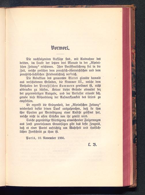 Die nachfolgenden Aufsätze sind, mit Ausnahme desdritten, im Laufe der letzten drei Monate in der „Rheini-schen Zeitung" erschienen. Ihre Veröffentlichung fiel in dieZeit, welche zwischen dem preußisch-österreichischen und dempreußisch-sächsischen Friedensschluß verstrich.