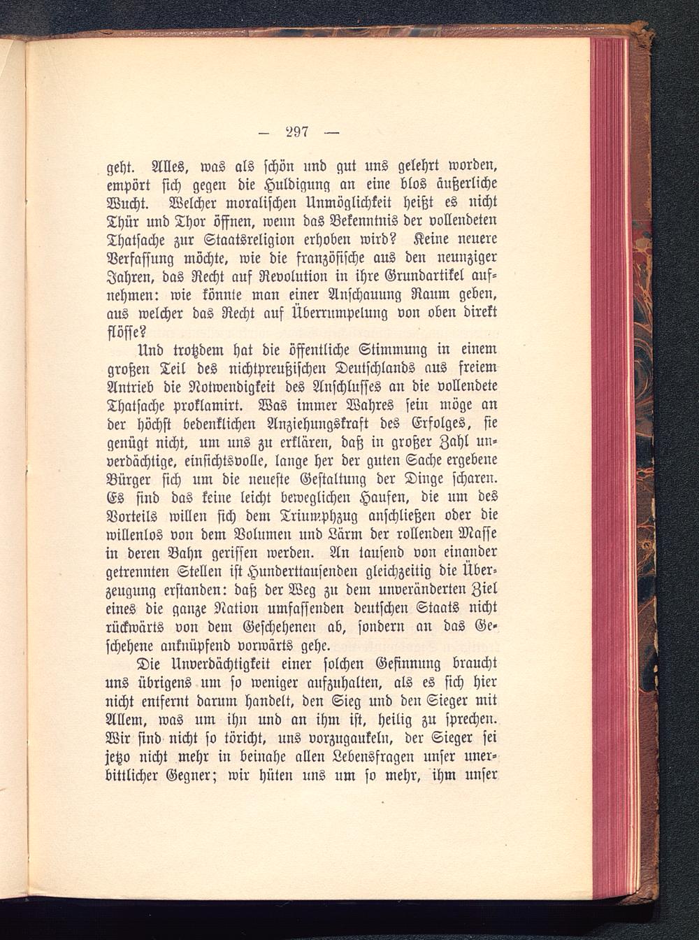 Die Unverdächtigkeit einer solchen Gesinnung brauchtuns übrigens um so weniger aufzuhalten, als es sich hiernicht entfernt darum handelt, den Sieg und den Sieger mitAllem, was um ihn und an ihm ist, heilig zu sprechen.Wir sind nicht so töricht, uns vorzugaukeln, der Sieger seijetzo nicht mehr in beinahe allen Lebensfragen unser uner-bittlicher Gegner; wir hüten uns um so mehr, ihm unser