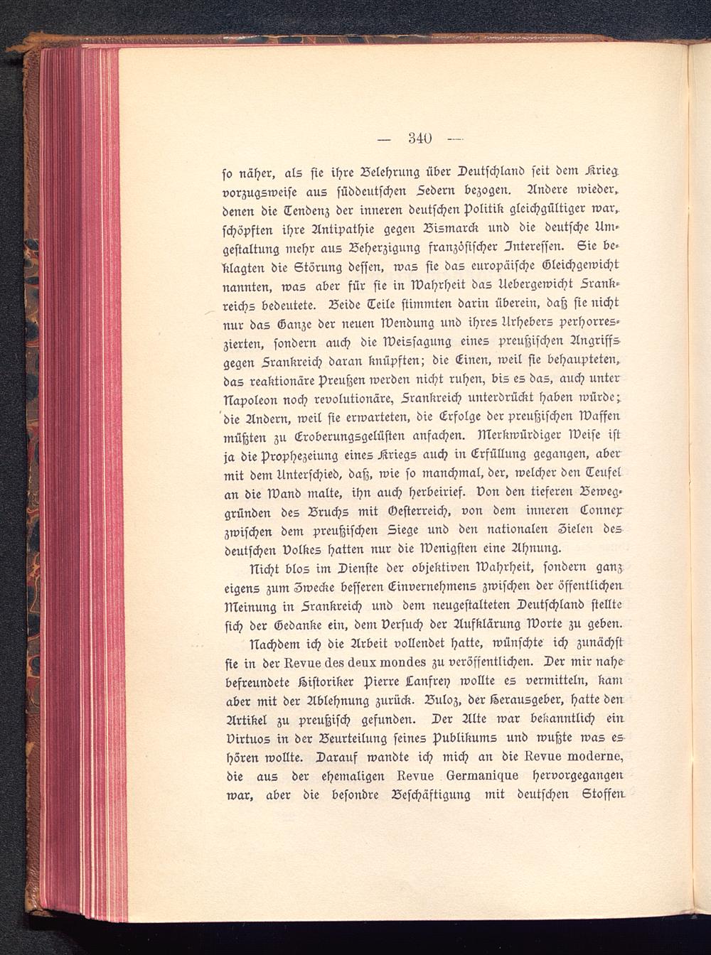 Nachdem ich die Arbeit vollendet hatte, wünschte ich zunächstsie in der Revue des dsux moucles zu veröffentlichen. Der mir nahebefreundete Historiker Pierre lLanfrey wollte es vermitteln, kamaber mit der Ablehnung zurück. Buloz, der Herausgeber, hatte denArtikel zu preußisch gefunden. Der Alte war bekanntlich ein.virtuos in der Beurteilung seines Publikums und wußte was eshören wollte. Darauf wandte ich mich an die Revue moderne,die aus der ehemaligen kevue Oermallique hervorgegangenwar, aber die besondre Beschäftigung mit deutschen Stoffen.