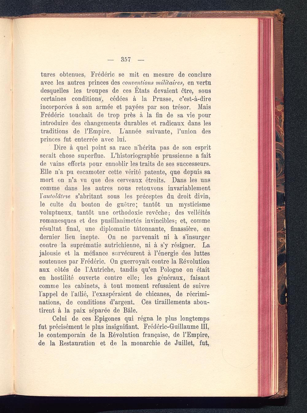 Celui de ces Epigones qui régna le plus longtempsfut précisément le plus insignifiant. Frédéric-Guillaume III ,le contemporain de la Révolution française , de l’Empire,de la Restauration et de la monarchie de Juillet, fut,