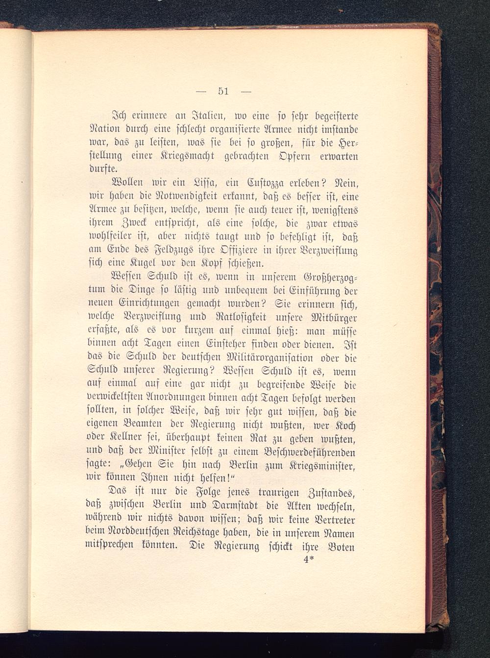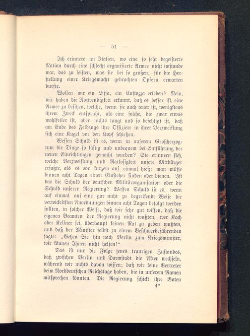 Ich erinnere an Italien , wo eine so sehr begeisterteNation durch eine schlecht organisierte Armee nicht imstandewar, das zu leisten, was sie bei so großen, für die Her-stellung einer Kriegsmacht gebrachten Opfern erwartendurfte.